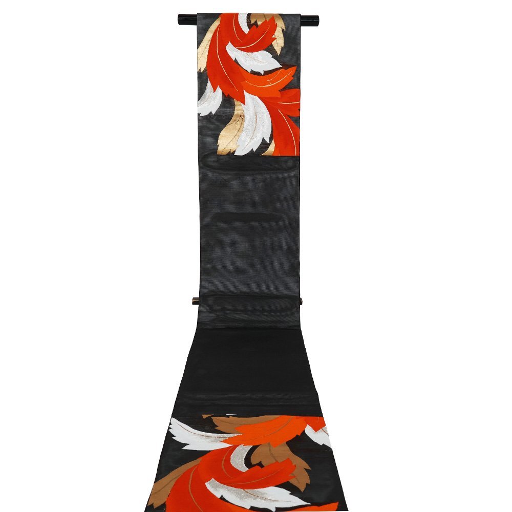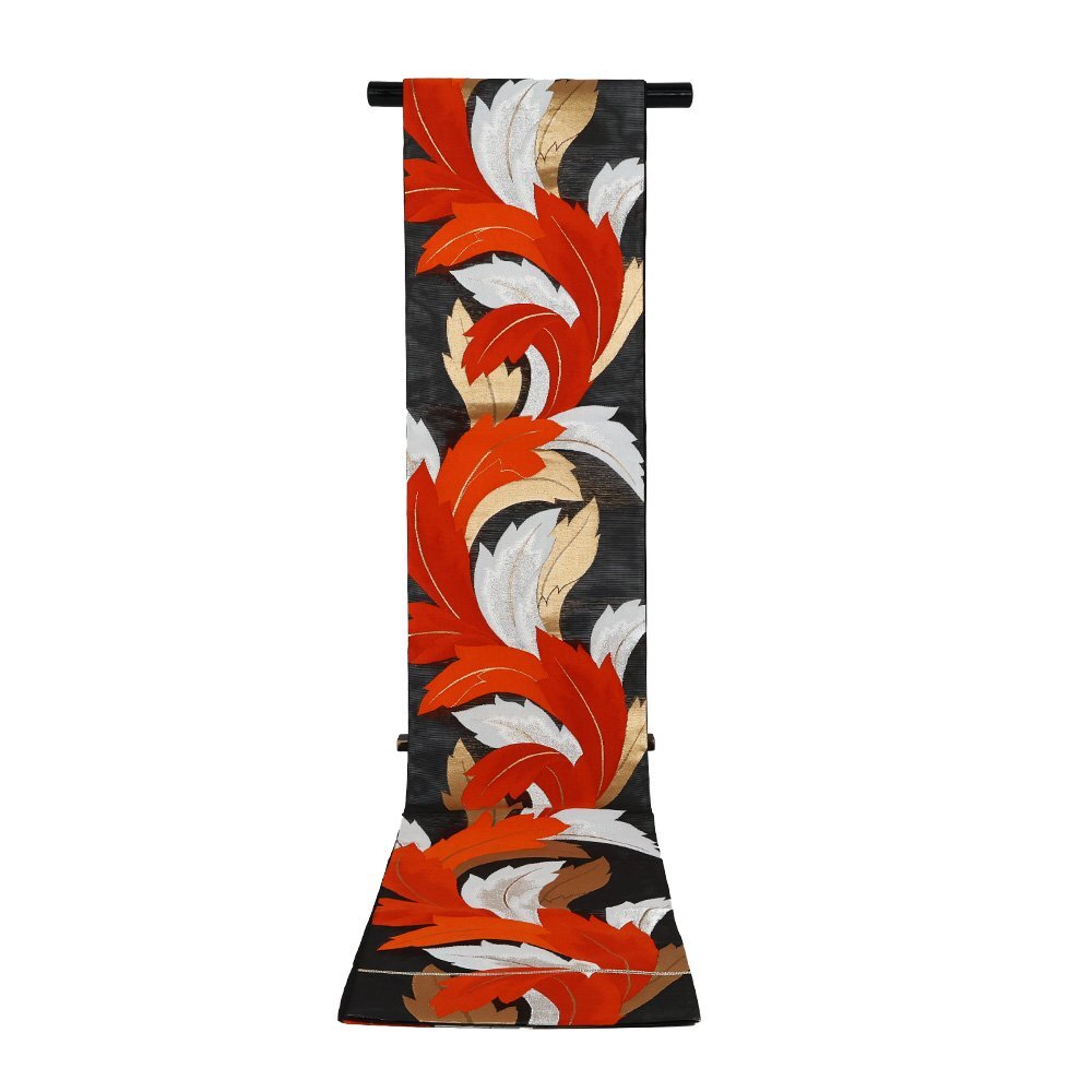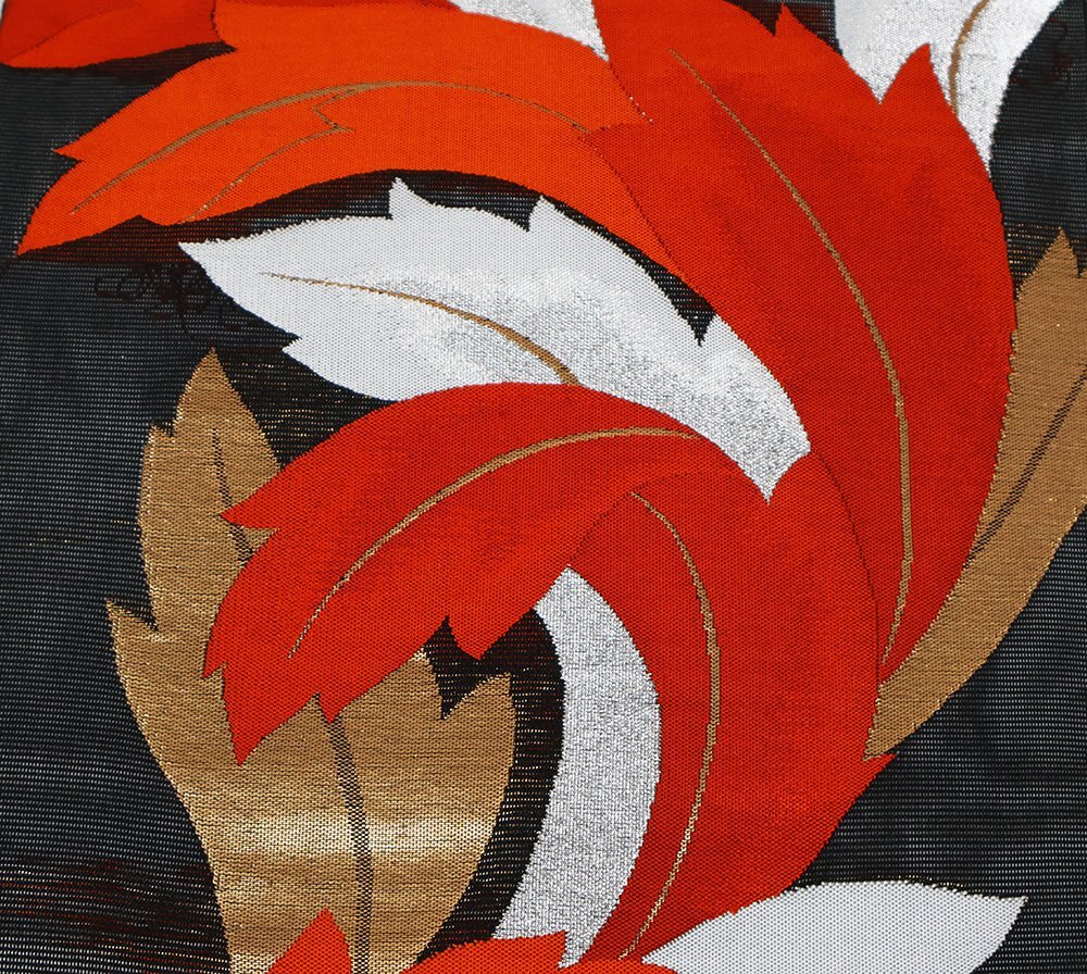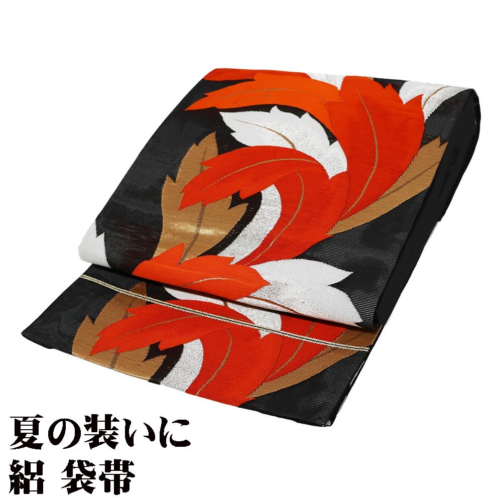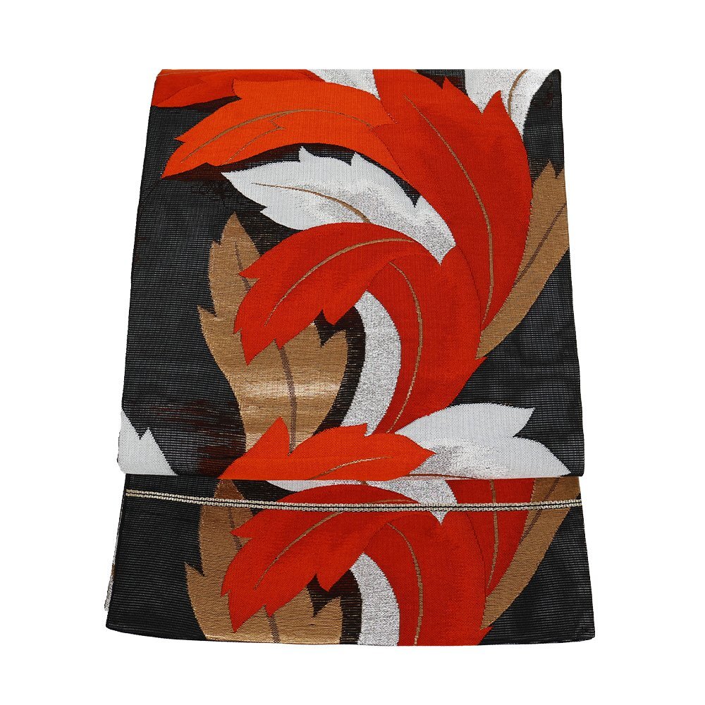 | 絽 西陣織袋帯 黒地 葉柄 仕立て上がり | |