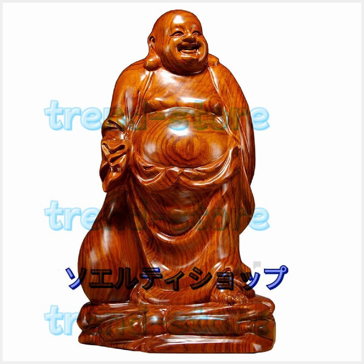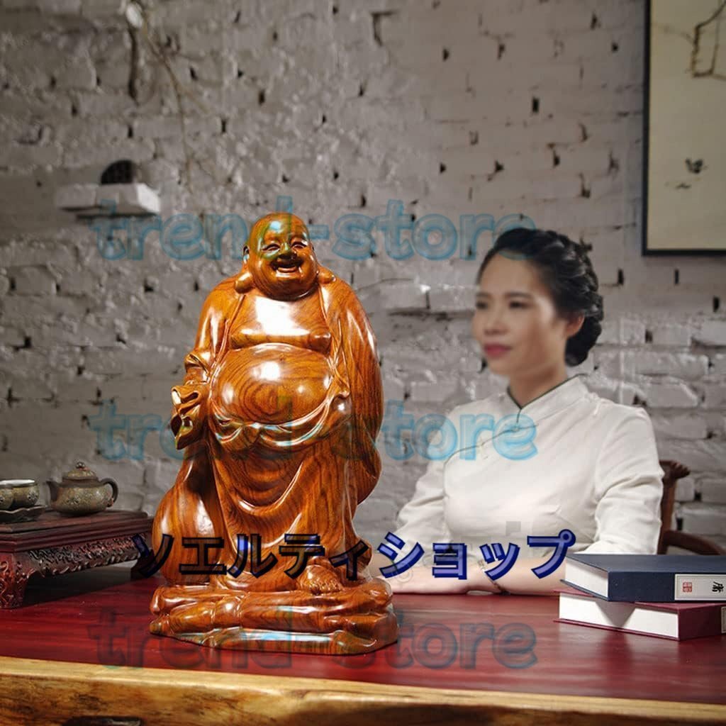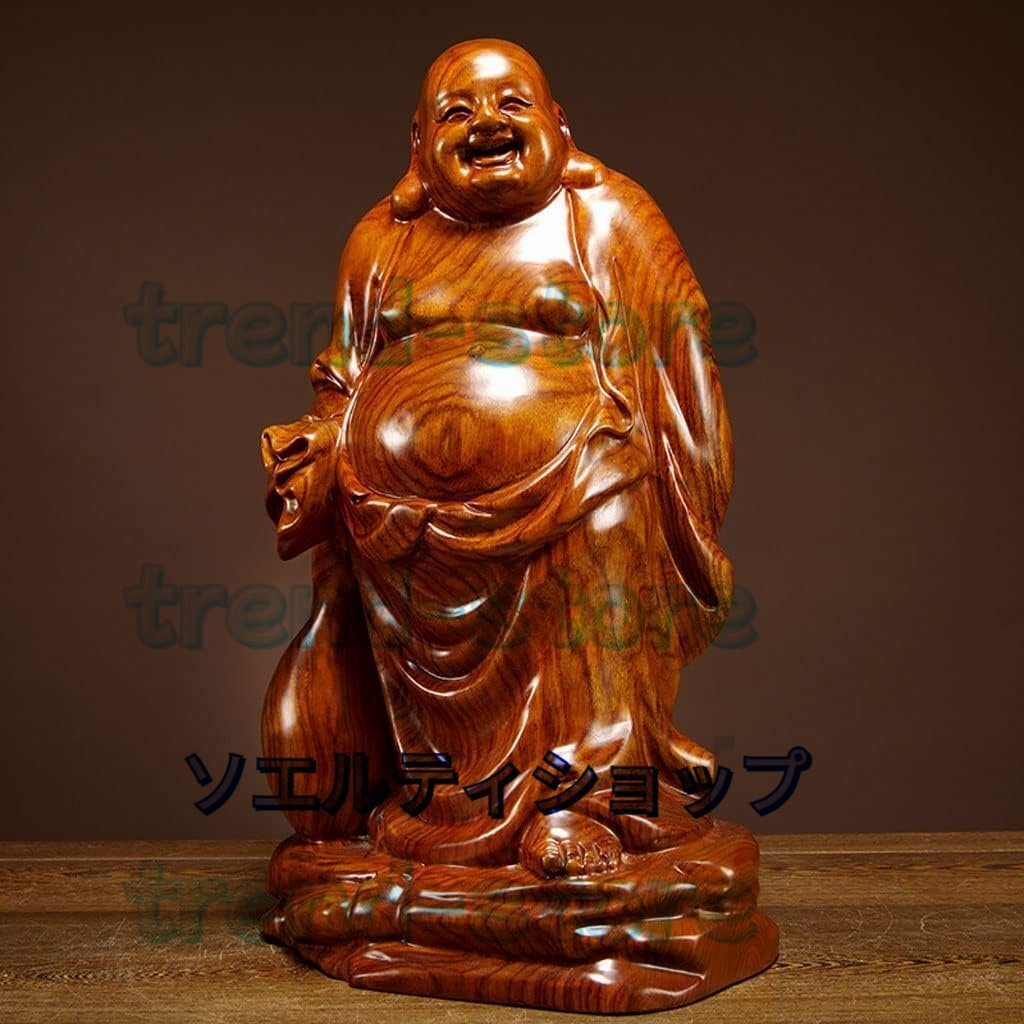 注目新作★仏像 木彫り 七福神 布袋 様 木像 木製フィギュア 黄花梨 花梨木 高級天然カリン材 金運 お守り(高さ40 cm)
