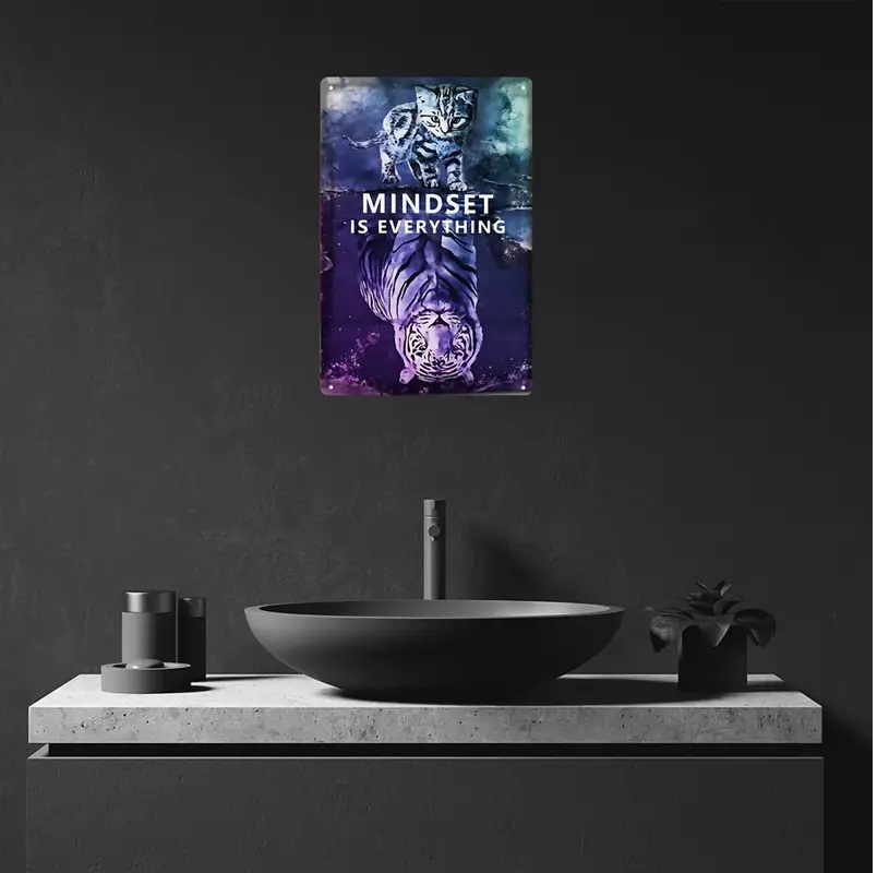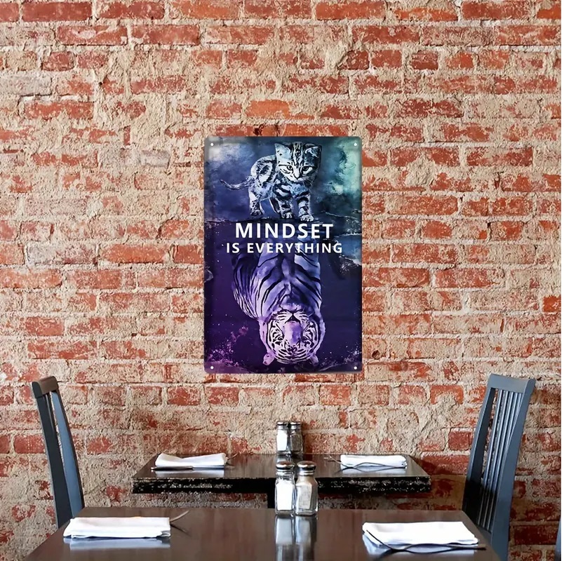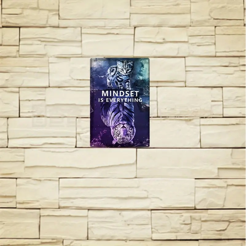 ブリキ看板 mindset is everything トラ 虎 看板 20×30㎝ ガレージ インテリア 雑貨 世田谷ベース アメリカン 啓発 起業 管D9