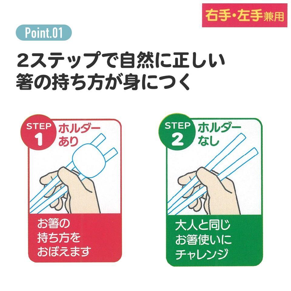 ●ホルダーあり/なしの2ステップで、お箸の正しい持ち方をトレーニング。