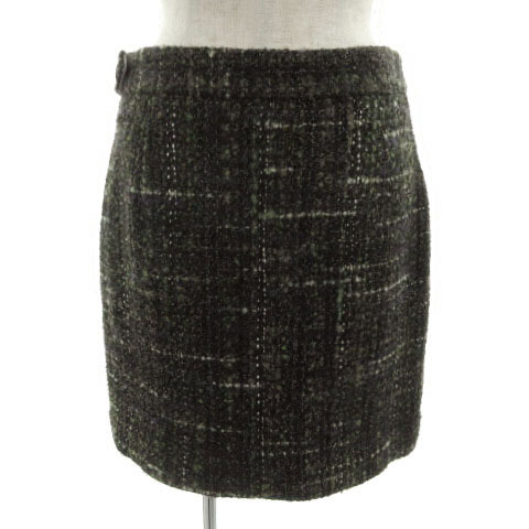 ブルックスブラザーズ スーツ フォーマル ジャケット ノーカラー スカート タイト ひざ丈 チェック ツイード ウール混 緑 マルチカラー 0