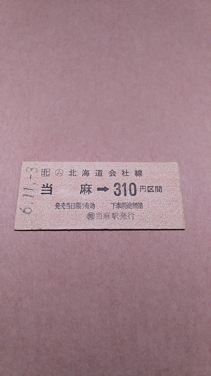 JR北海道 石北本線 (ム)当麻→310円区間 (簡)当麻駅発行