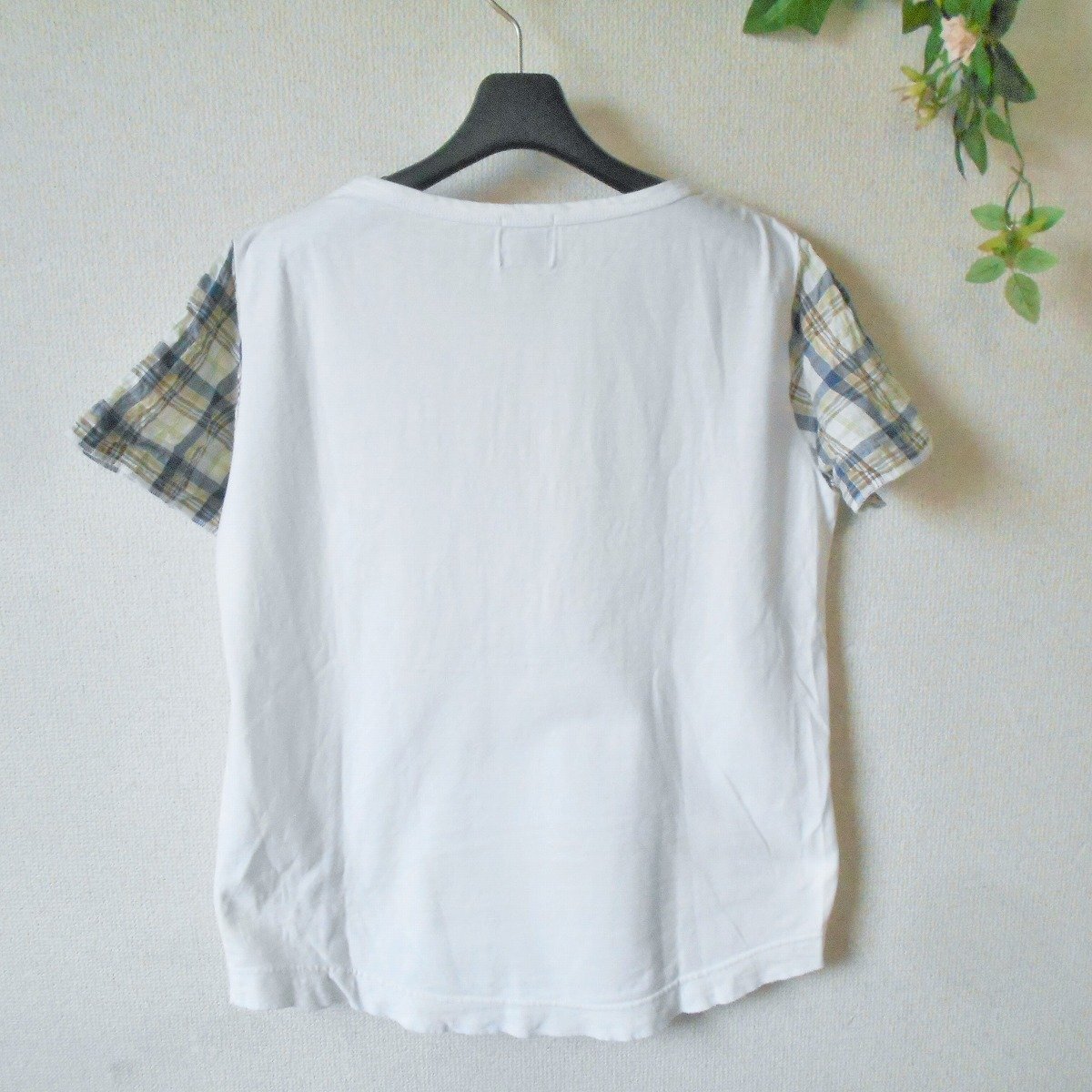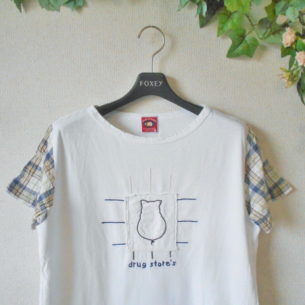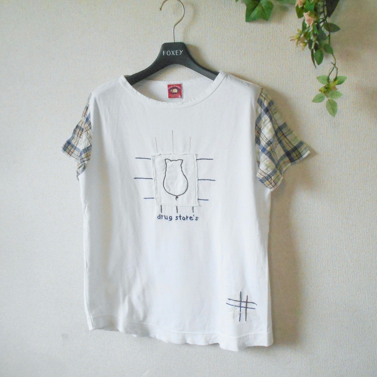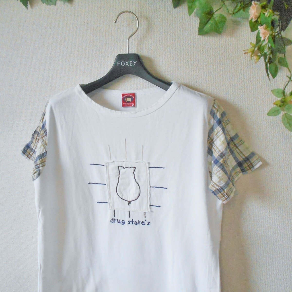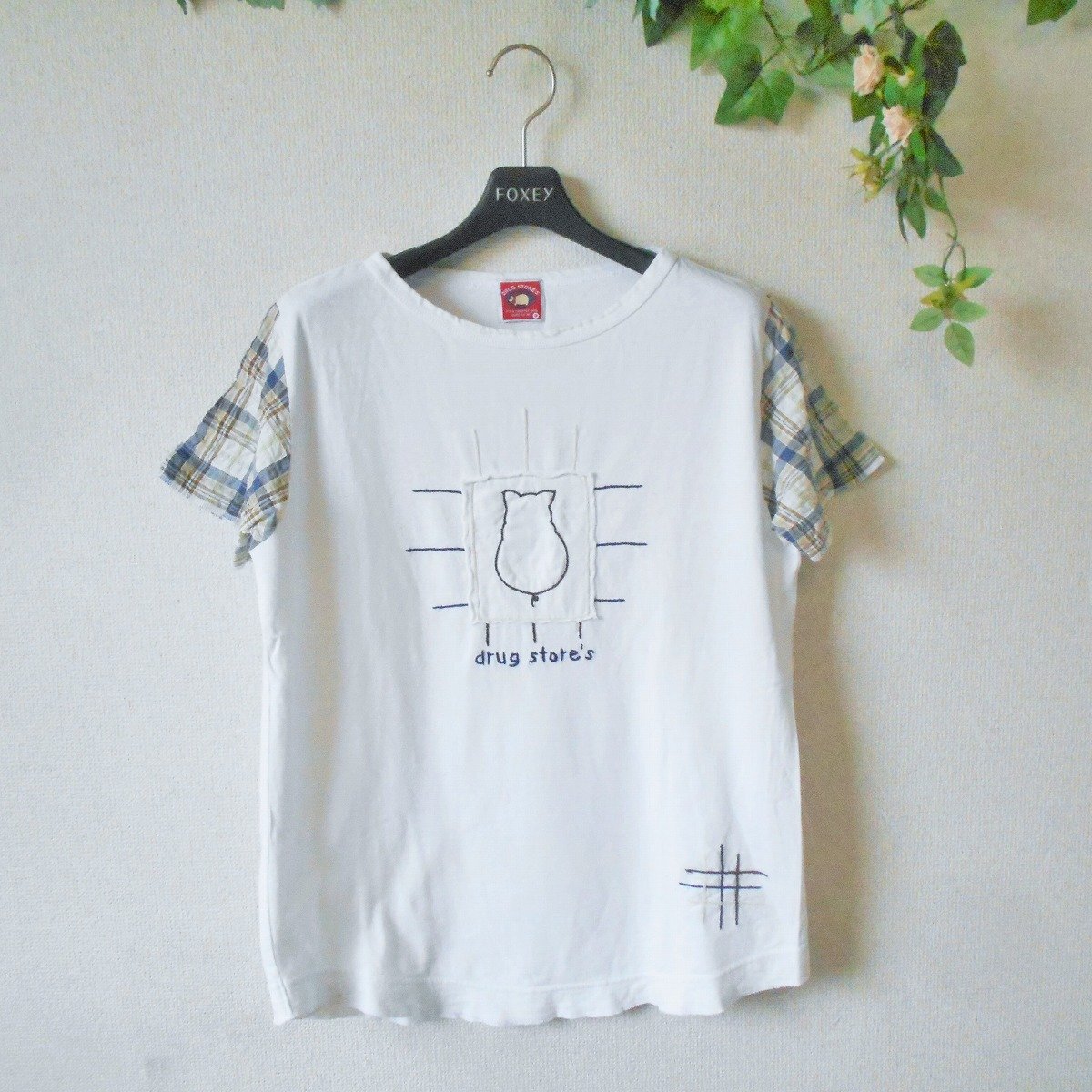 【ポイント】ドラッグストアーズのレディース用カットソーになります。お色は白色ベースで夏を中心に着ていただけるお品です。お袖は別布のチェック柄で、とってもお洒落なデザインです。