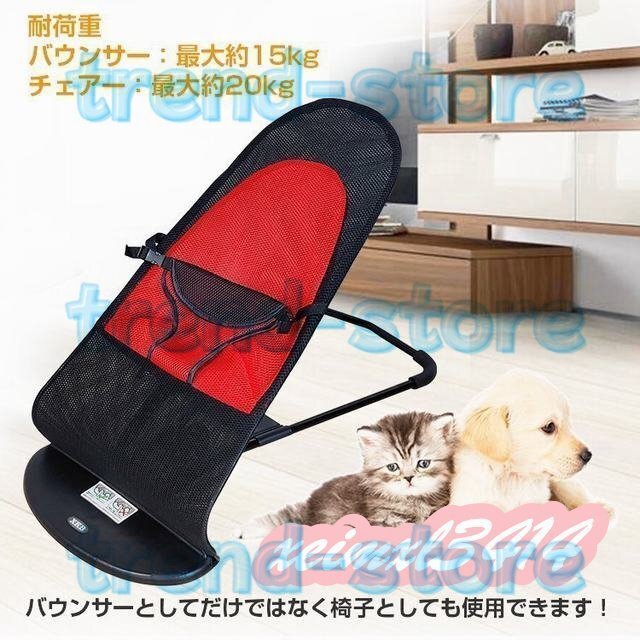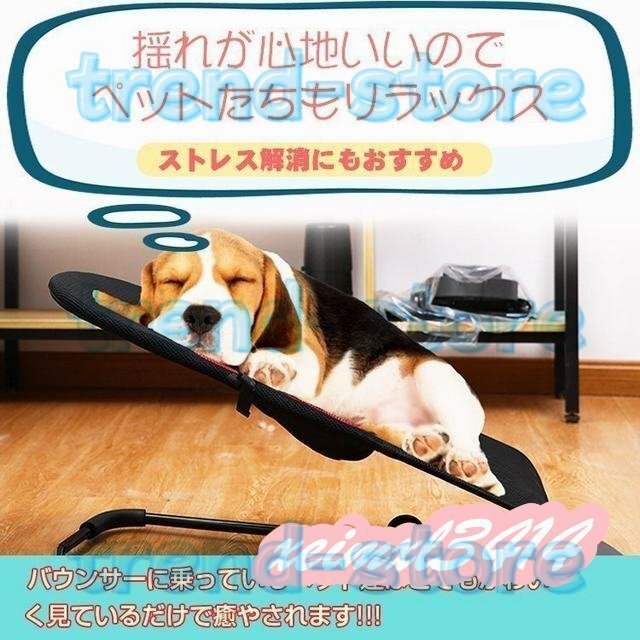 "【商品内容】:ペットバウンサー 【サイズ】:約39cm×78cm×42~55cm 【商品重量】:約1.54kg 【耐荷重】:バウンサー:約15kg チェアー:約20kg