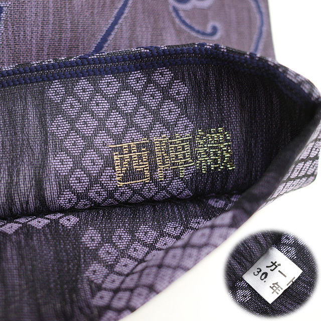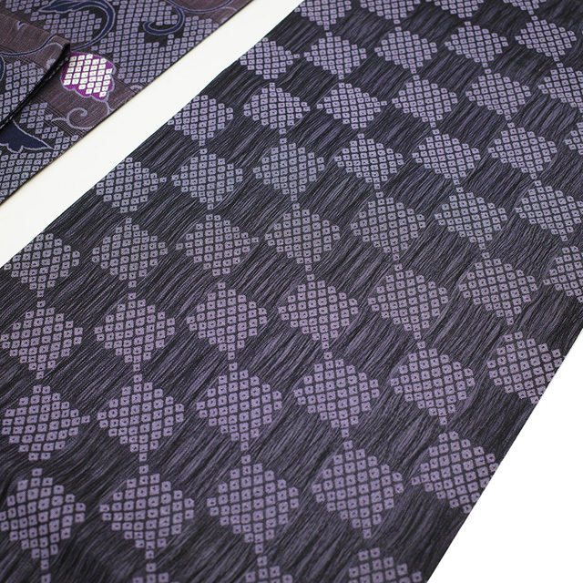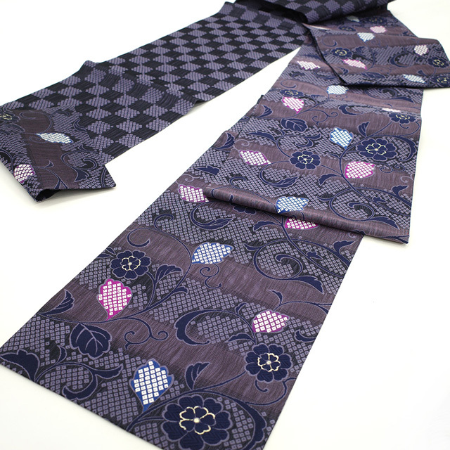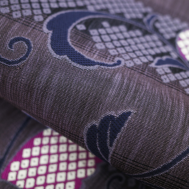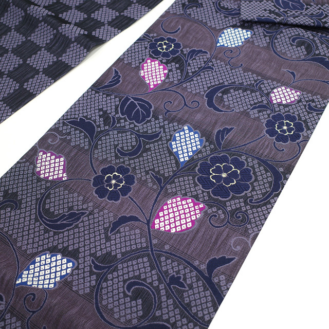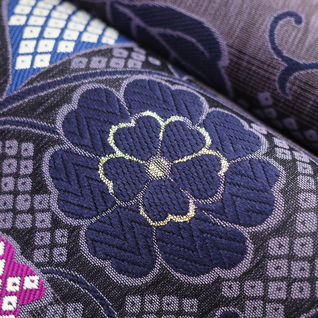 こちらのお品は、シックな紫×黒で花唐草が織り上げられたおしゃれなデザインです。