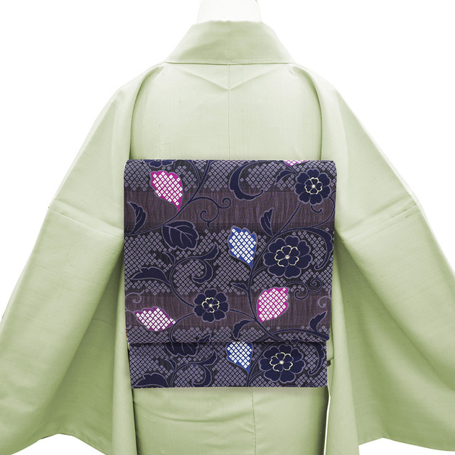 こちらの帯は、9~6月(盛夏以外の秋・冬・春スリーシーズン)の袷と単衣に合わせていただけます。