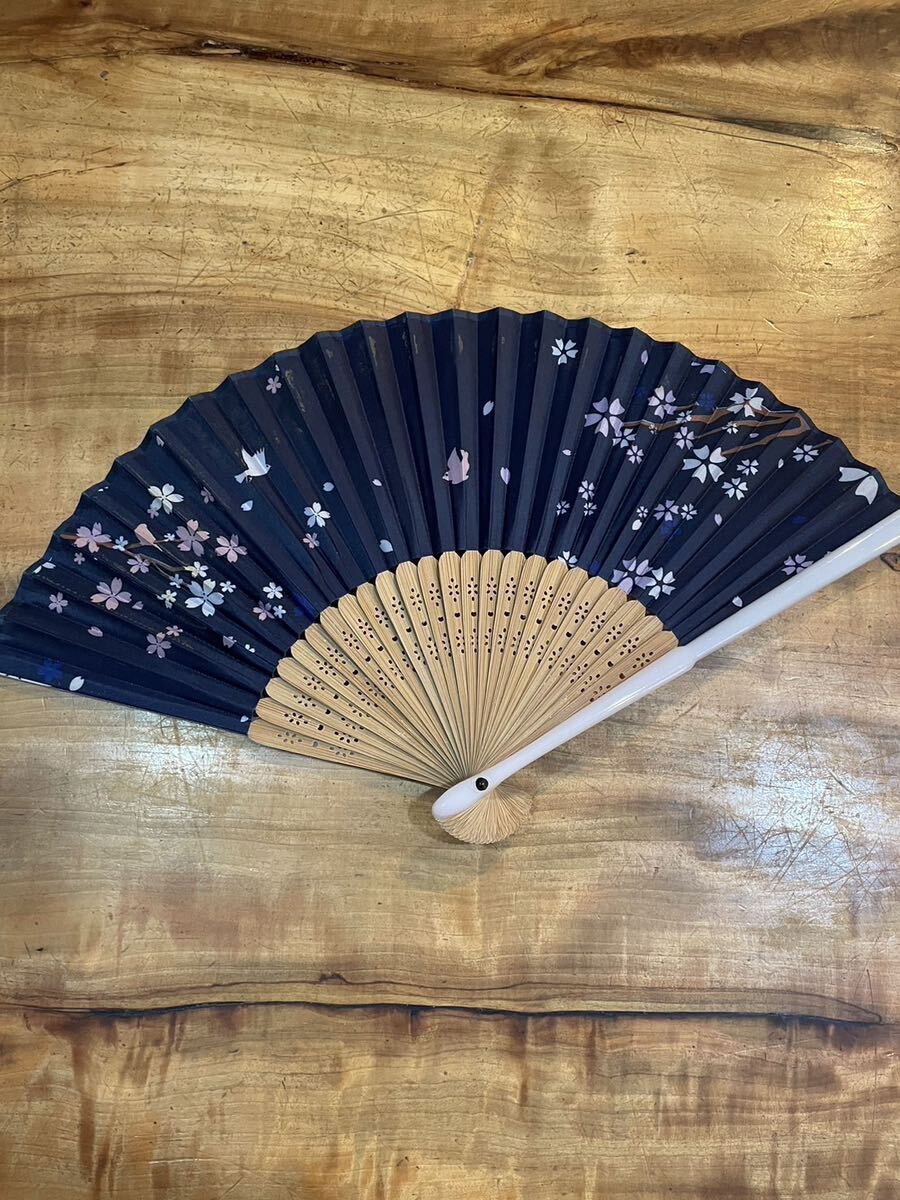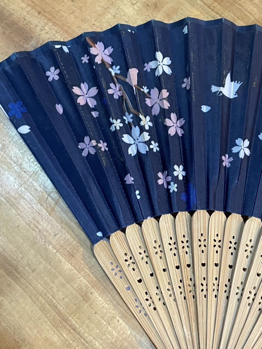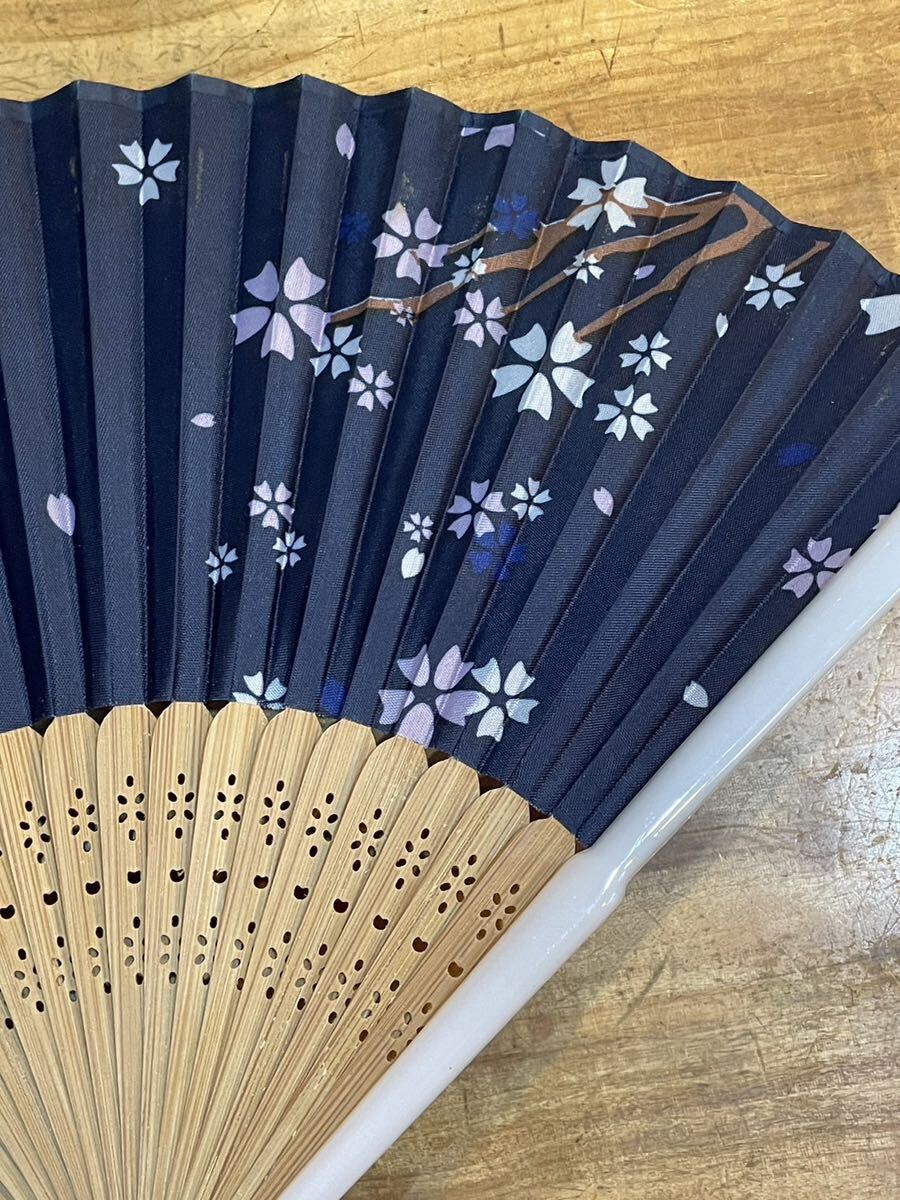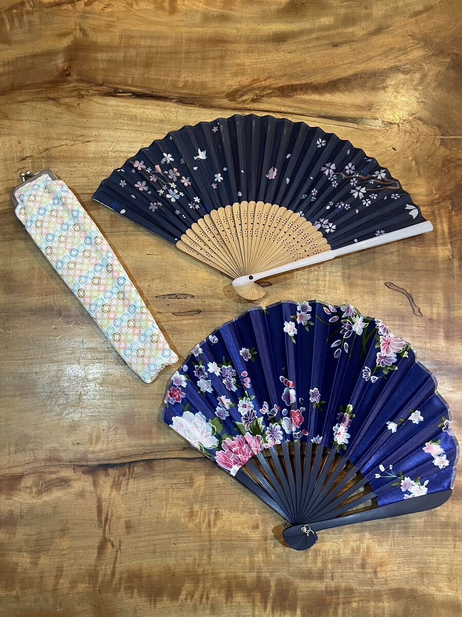 花絵 扇子 2点 がま口 扇子入れ 1点。
