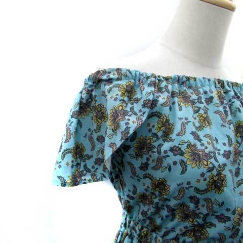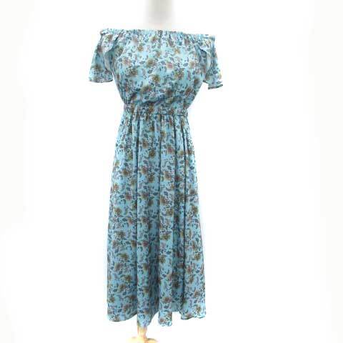 スパイラルガール SPIRALGIRL ワンピース オフショルダー 半袖 ロング丈 花柄 F マルチカラー 水色 ライトグリーン /HO27 レディース