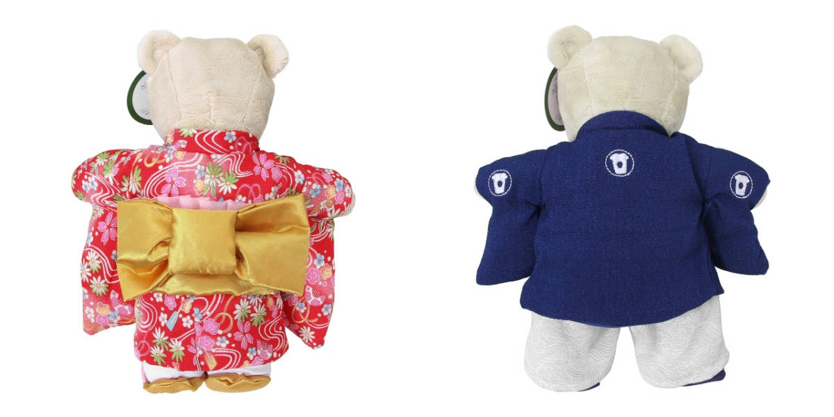 カップの家紋が刺繍された紋付き袴を着た、特別なデザインのベアリスタです。