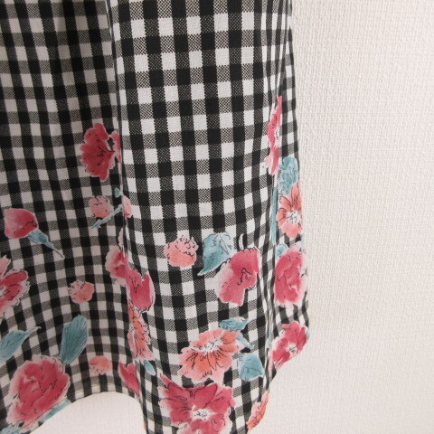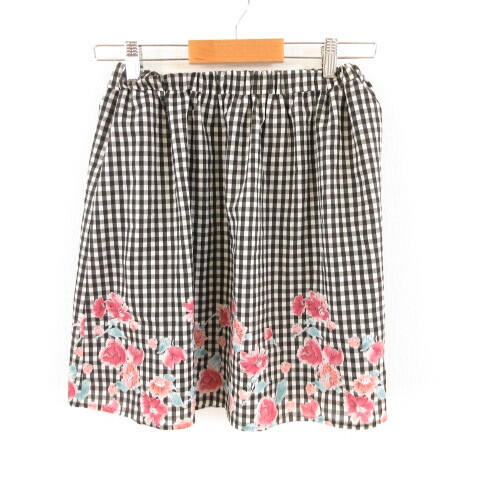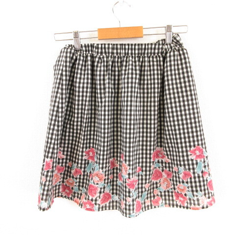 ペイトンプレイス PEYTON PLACE スカート ミニ フレア チェック 花柄 黒 M *A417 レディース