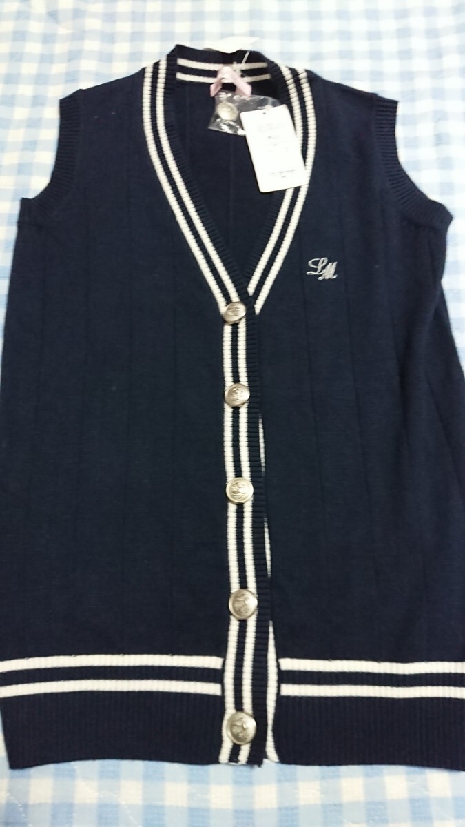 〇130☆未使用・保管品☆前ボタン ベスト 紺150