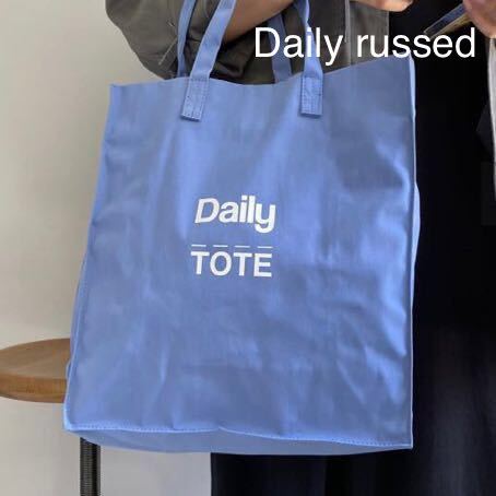 M【新品】デイリーラシット アイコントートバッグDaily russet ブルー トートバッグ レディース ロゴ サブバッグ 撥水 ポリエステル