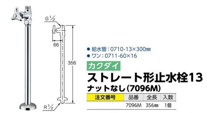倉庫での保管品ですので段ボールに汚れやホコリがあります。 神経質な方は、ご遠慮ください。 画像にある物が全てです。 メーカー ◆ KAKUDAI カクダイ 商品名 ◆ストレート形止水栓13 ナットなし 品番 ◆ 7096M 商品詳細はメーカーにお問合せください。 在庫1個のみ