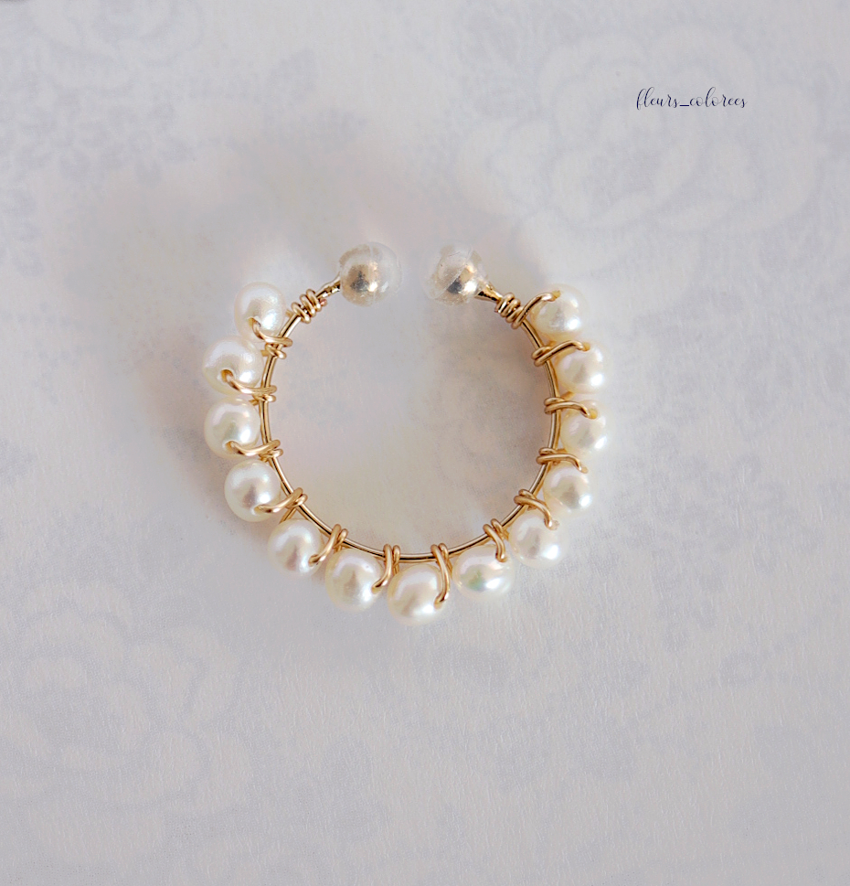 ホワイトの淡水パールを、丁寧にぐるっと連ねたイヤーカフです。
