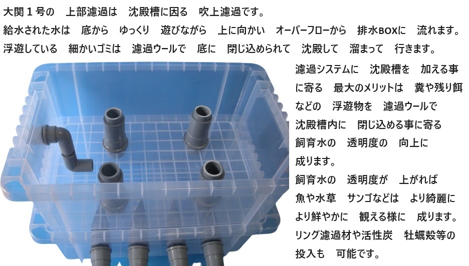 濾過ウールに因る 吹上濾過で 濾過能力が 倍化致します。