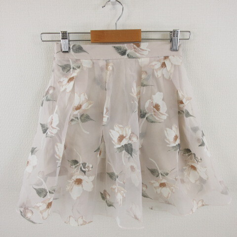 ダズリン dazzlin ミニスカート フレア チュール 花柄 ベージュ F *T738 レディース
