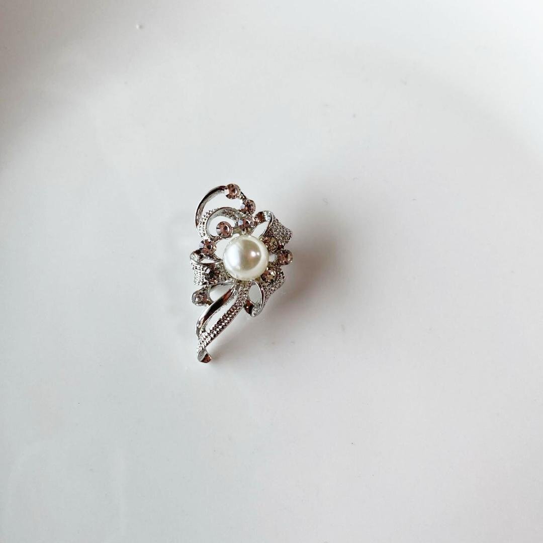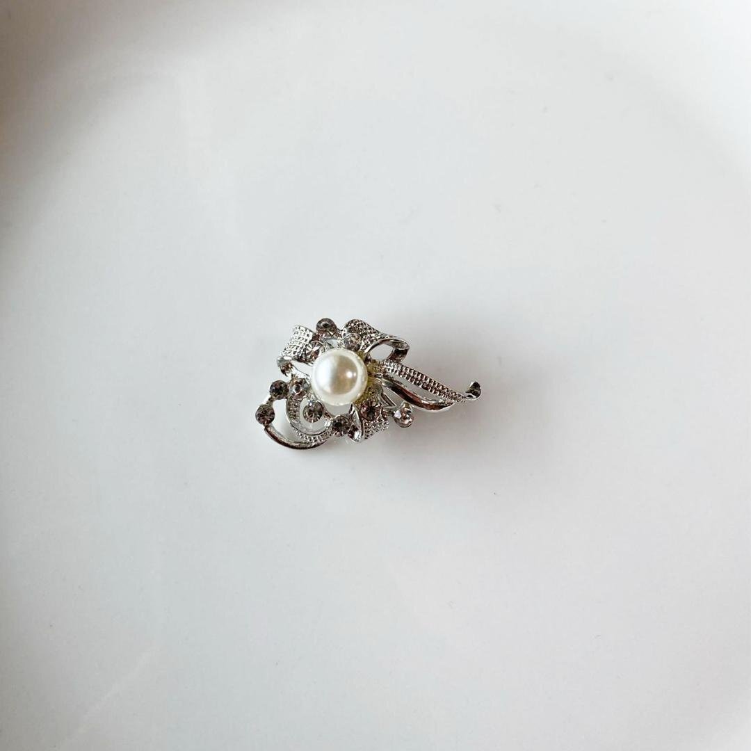 ひと粒パール ミニ フラワー ブローチ/シルバー