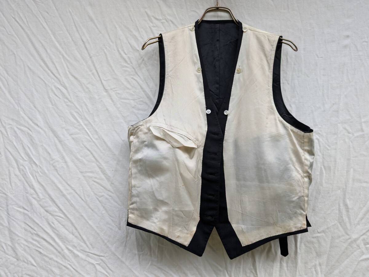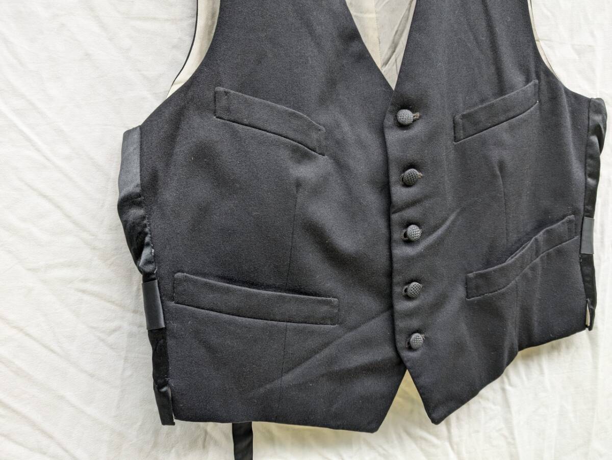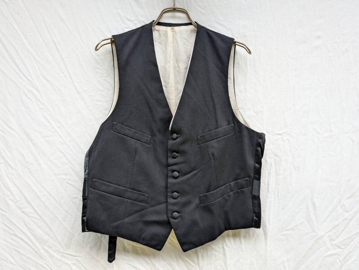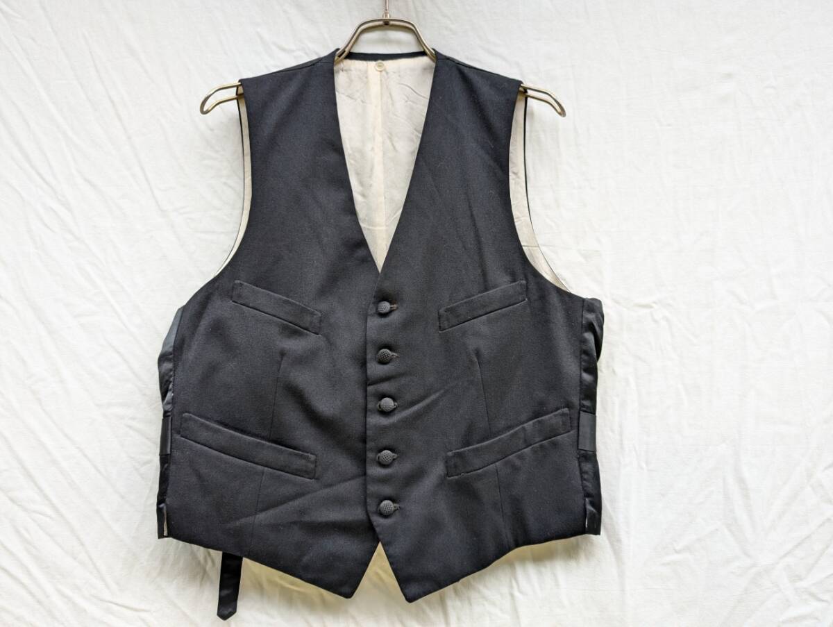 - 激渋 戦後 ウール ジレ ベスト シンチバック SOLIDE 別襟付き ジャパンビンテージ JAPAN VINTAGE 日本の古い服 黒 50s60s Kind Wear -
