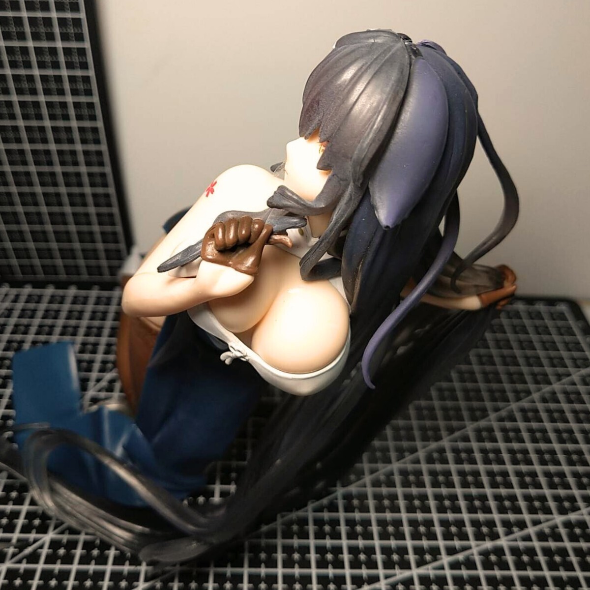 #アズールレーン吾妻 #濃紺チャイナ服 #ニーハイ魅惑 #黒髪ロングヘアー #豊満な胸 #座りポーズ #きょとん表情 #語らいの春霞 #軽装Ver #女性らしい美しさ #青少年に人気 #魅惑的フィギュア #アルター #心をくすぐる #胸キュンフィギュア