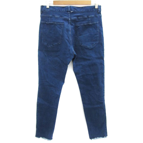 アーバンリサーチ デニムパンツ ジーンズ テーパードパンツ ロング丈 ダメージ加工 フリンジ 40 L ネイビー 紺 /YM19 ■MO レディース