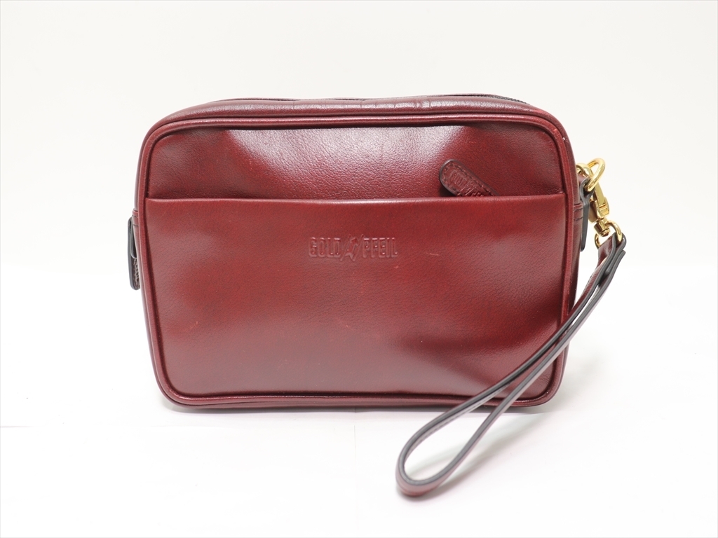 $ 美品 $ ■ ゴールドファイル ■ GOLD PFEIL■ ロゴ入り 本革レザー製・セカンドバッグ ポーチ■ ワインレッド系■ヴィンテージ■送料無料