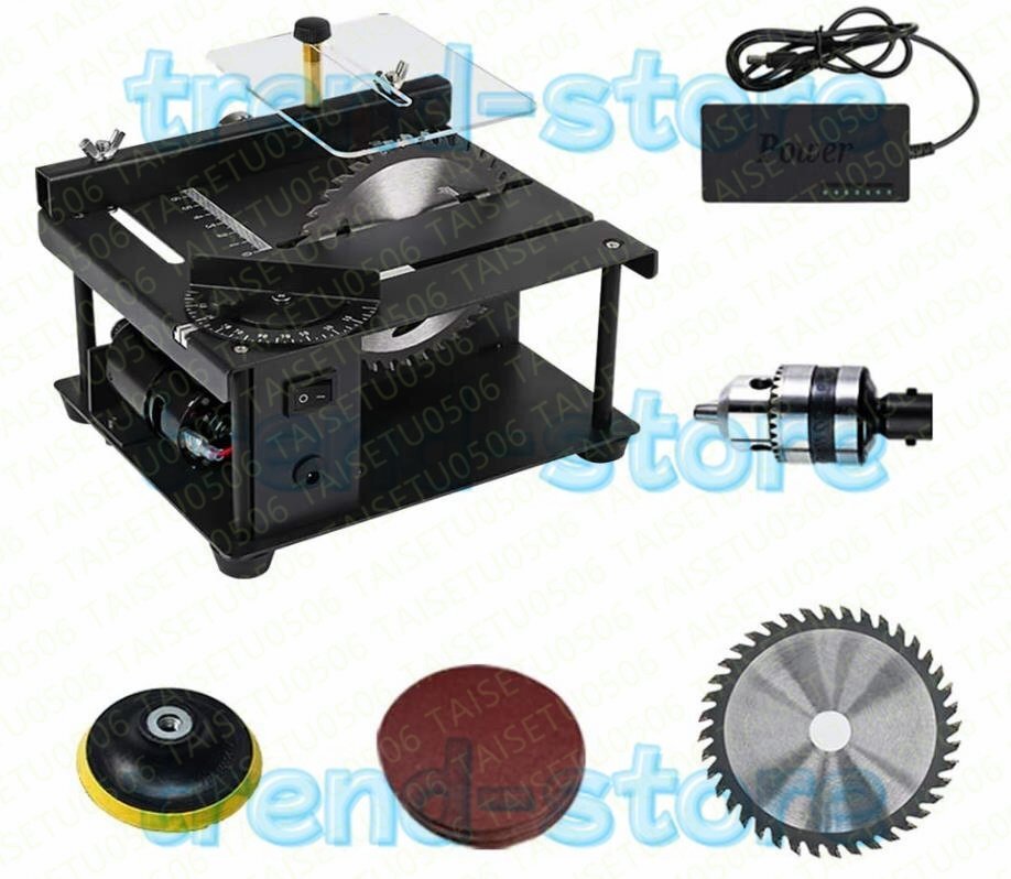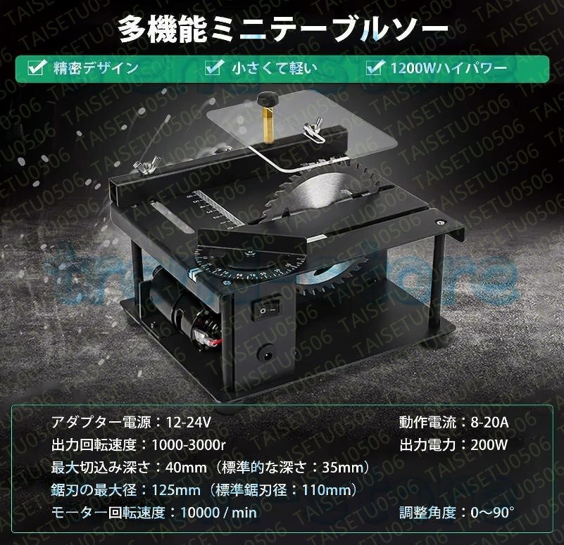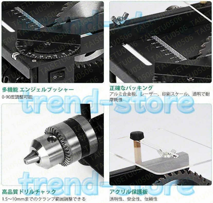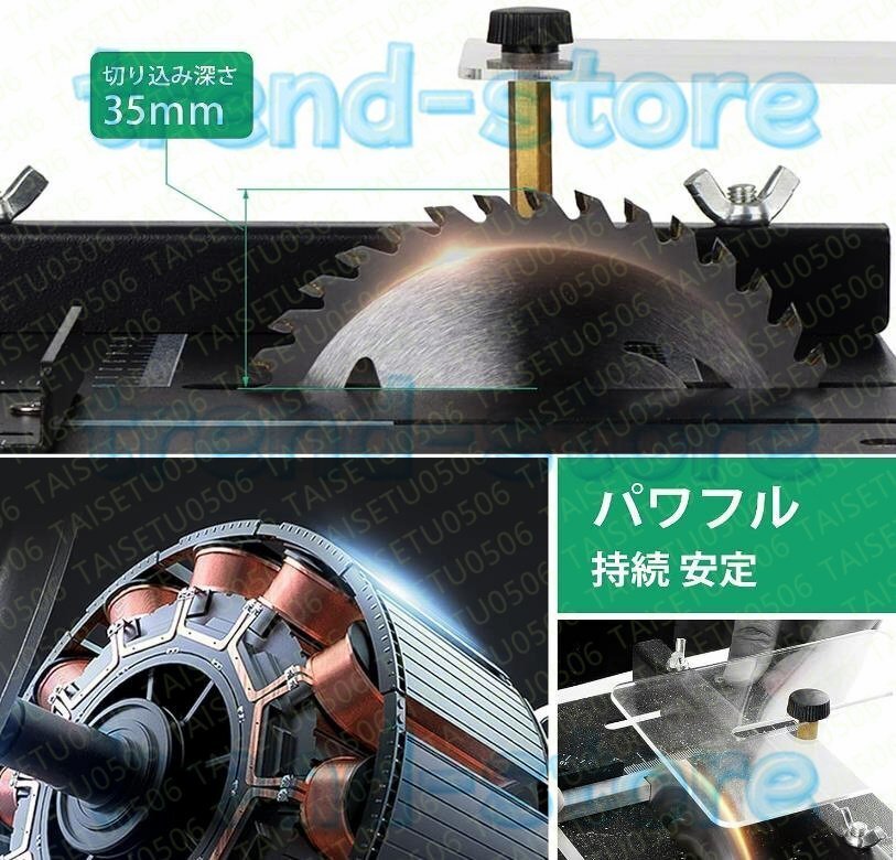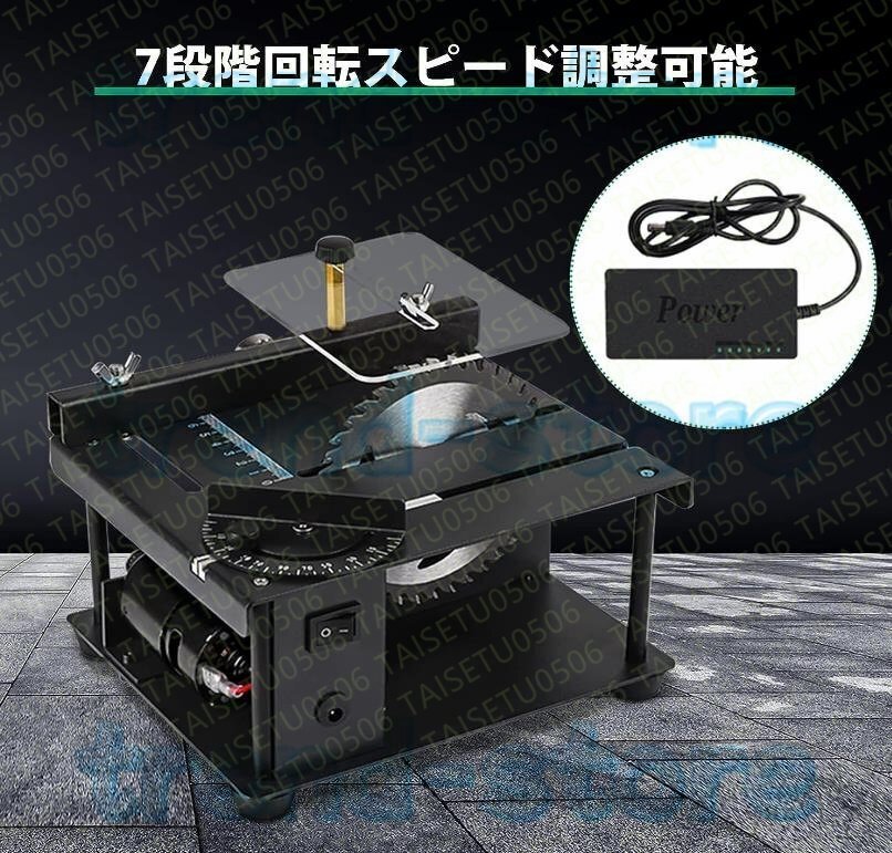 新入荷☆テーブルソー 丸鋸 家庭用 DIY ミニ 卓上 切断機 アルミ合金・木材・基板・アクリル 角度スケール 7段階回転速度調整可能