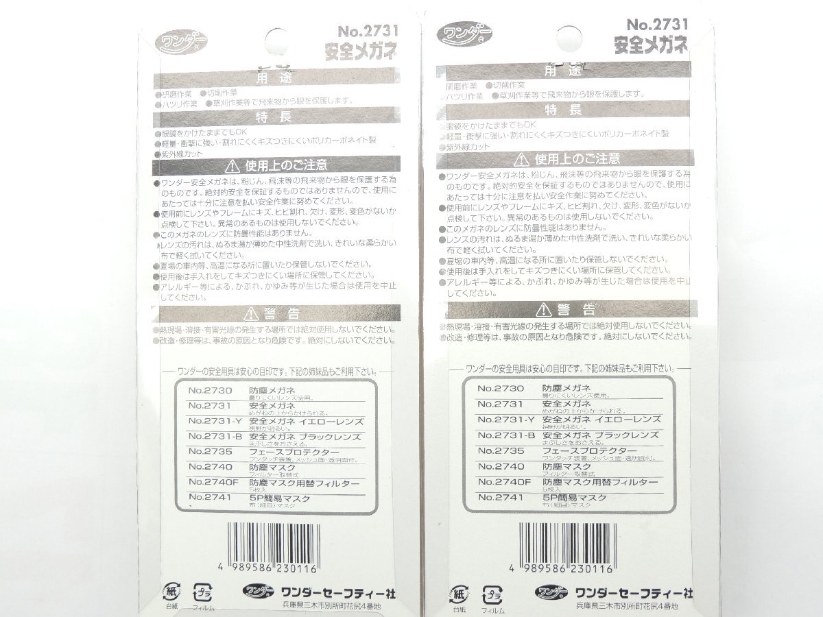 ワンダーセーフティー安全メガネ 透明 No.2731 2個セット JAN 4989586230116 眼鏡 草刈り 研磨作業