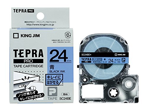 ◆テプラPRO・キレイにはがせるラベル 青/黒文字◆はがした際に、ノリが残りにくい特殊な弱粘着ノリを使用したラベルです。 / ■ 仕 様 ■長さ:8m キレイにはがせるラベル 青/黒文字 テープ幅:24mm / |