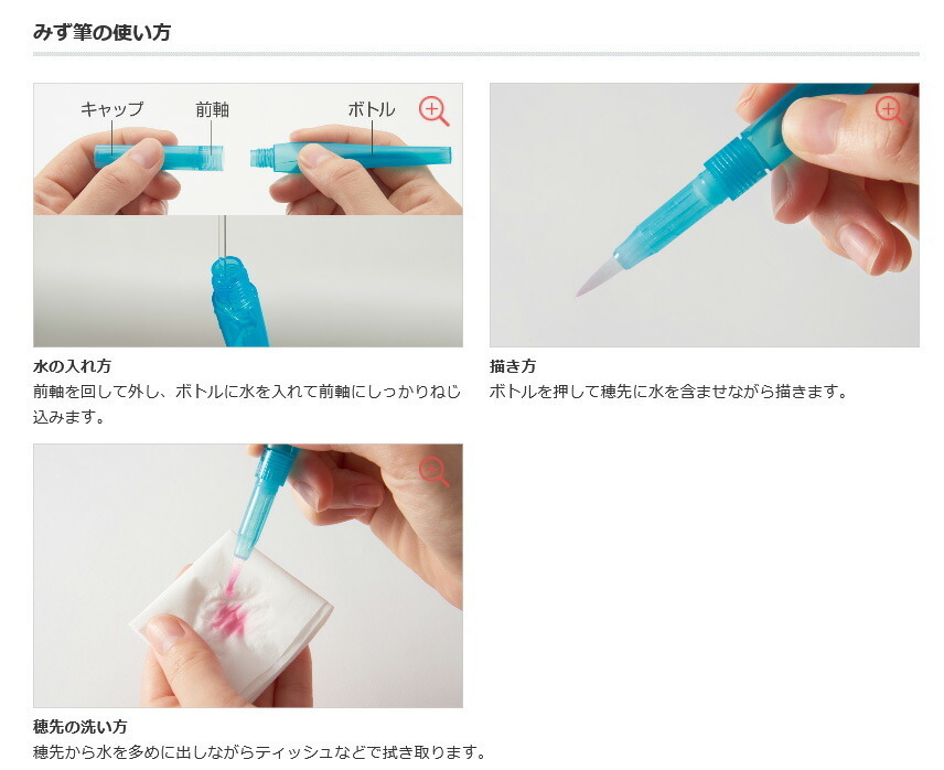 初心者にも使いやすい、サッと使えるスリムなみず筆です。従来品に比べ水出しの調整がしやすく、ポイント水彩に最適です。穂先には化粧筆にも使用される“ぺんてる独自のナイロン毛”を採用。水含みが良く、傷みにくく、パステルとの相性も抜群です。