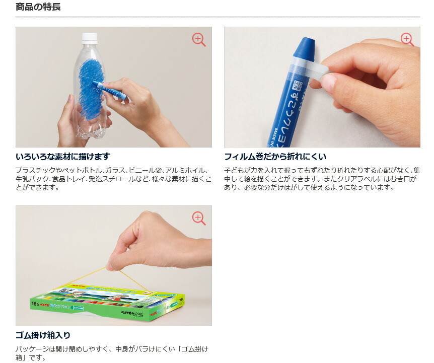 子どもが力を入れて握ってもずれたり折れたりする心配がなく、集中して絵を描くことができます。またクリアラベルにはむき口があり、必要な分だけはがして使えるようになっています。