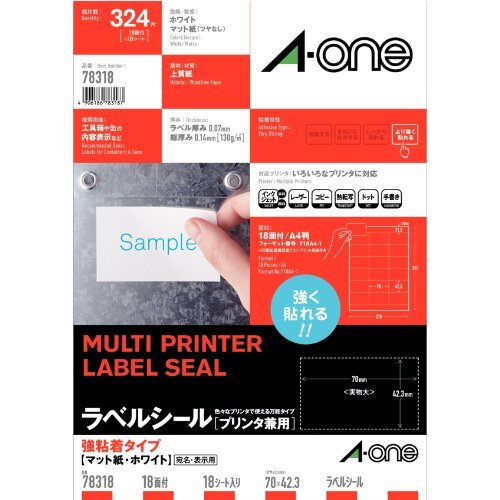 ●A4判 18面 上下余白付/シートサイズ:A4判 (210mm×297mm)/ラベルサイズ:70mm×42.3mm(3列×6段)