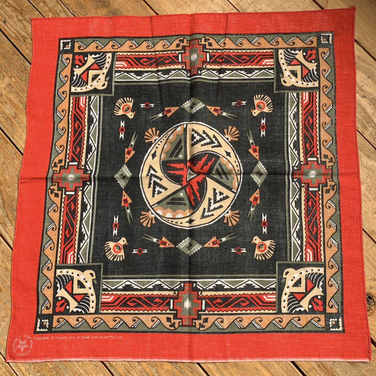 アメリカで購入したセカンドハンド(古着)の、 ネイティブ柄のバンダナです。