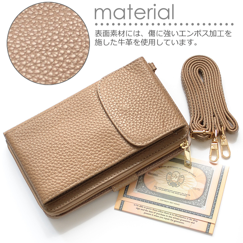 【仕様】:・スマホ用ポケット×1・ファスナーポケット内(札入れ×2・仕切り小銭入れ×1)