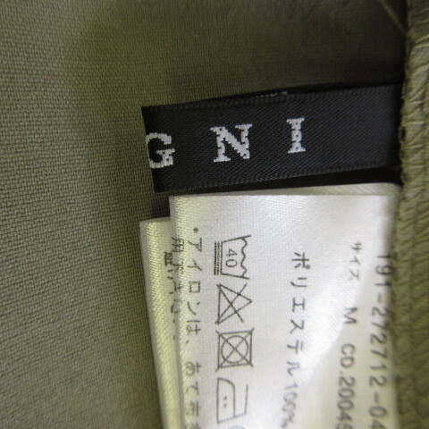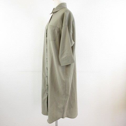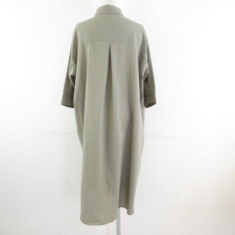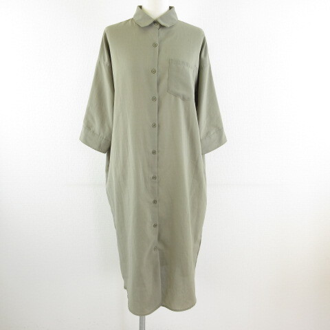 イング INGNI シャツワンピース 七分袖 ミモレ丈 カーキ 緑 M *T788 レディース