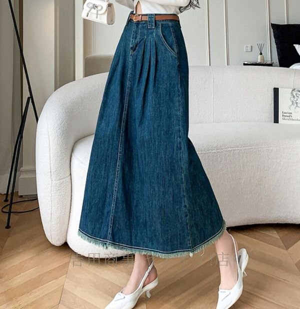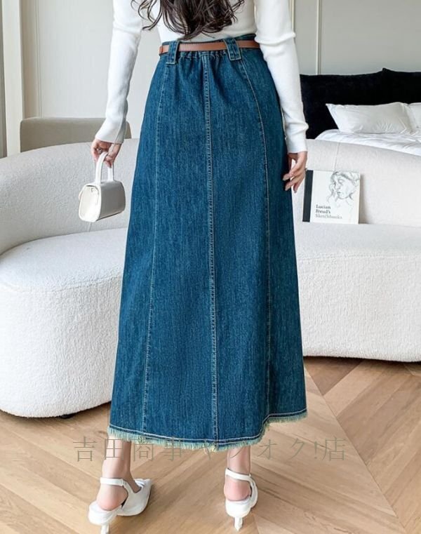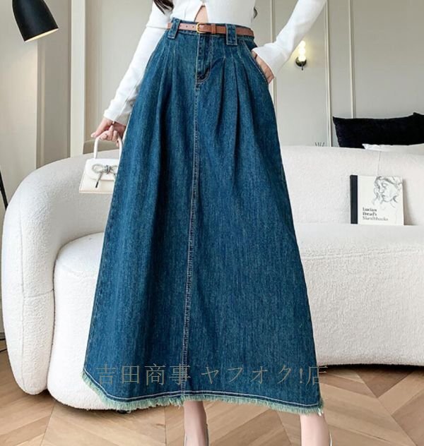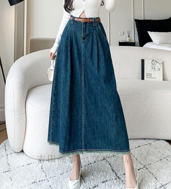 A1360☆新品あす楽 デニムスカート フレアスカート マキシ デニム マキシ丈 スカート ミモレ丈 膝下 ロングスカート S