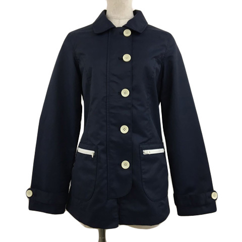 エディーバウアー EDDIE BAUER ジャケット シングル ジップアップ 無地 長袖 PXS 紺 白 ネイビー ホワイト レディース