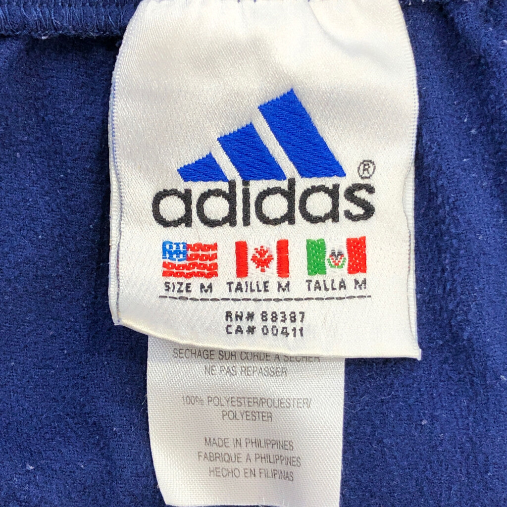 | [商品管理番号] R2488 [ブランド] adidas/アディダス [サイズ] M [実寸サイズ] ウエスト(ゴム):約72cm 股上:約39cm 股下:約76cm わたり幅:約36cm 裾幅:約19cm [主な素材] 表地 : ポリエステル [色] ネイビー [仕様] 00年代 スポーツ [状態] | |||