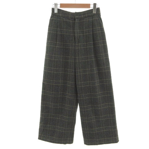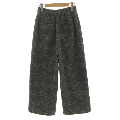 ケービーエフプラス KBF+ アーバンリサーチ パンツ ワイドパンツ ウエストゴム ウール混 千鳥格子 チェック グレー 黒 カーキ One