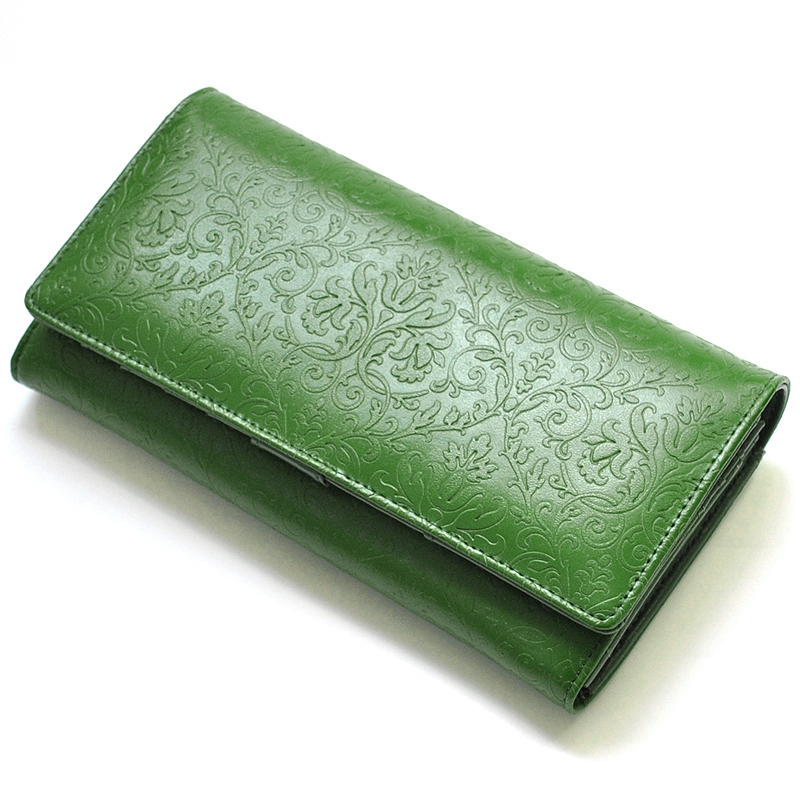 【ブラックフライデータイムセール】【送料込み】【限定】【新品】【税込み】牛革プラントパターン☆大容量☆アコーディオンウォレット GR