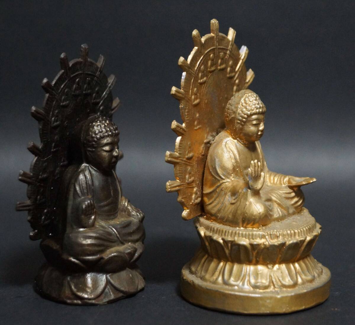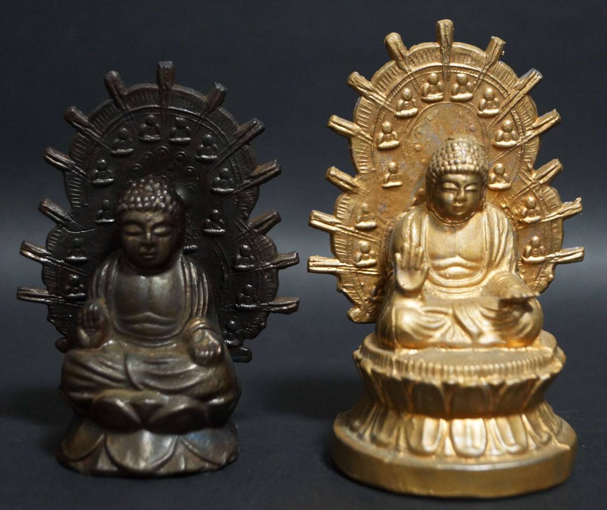 【寂】仏像 仏教美術 大佛尊像 大仏 置物 二体セット s60703