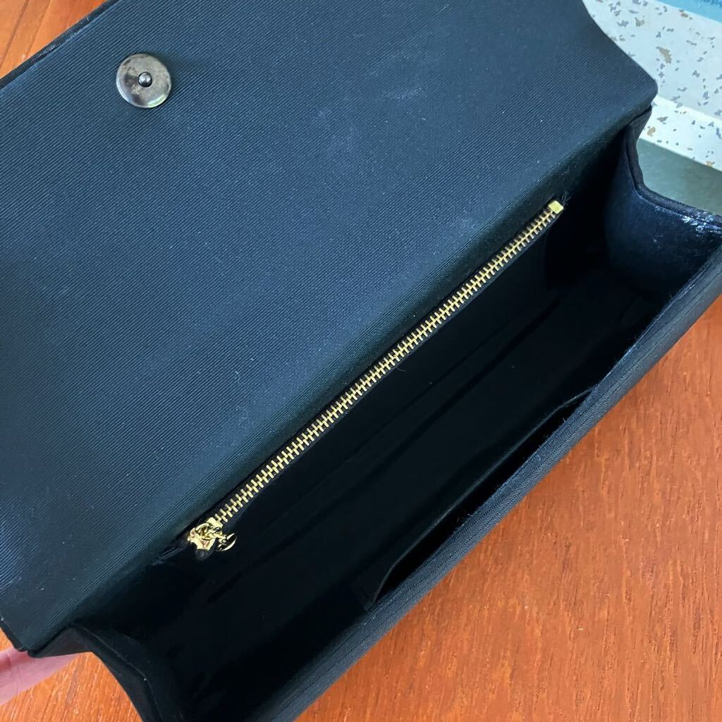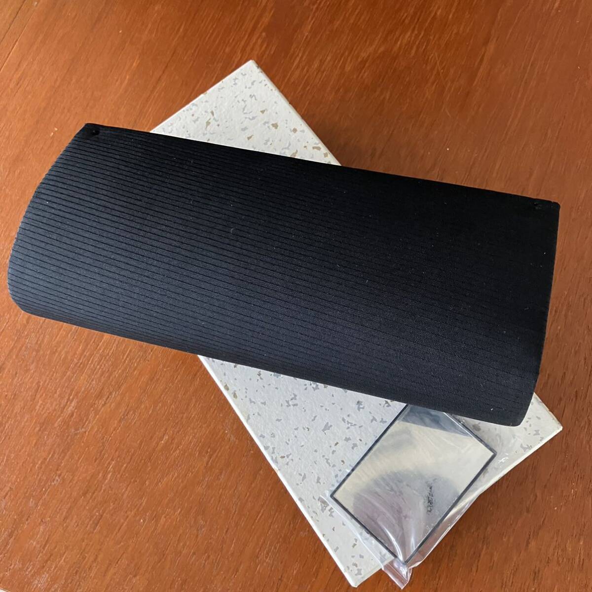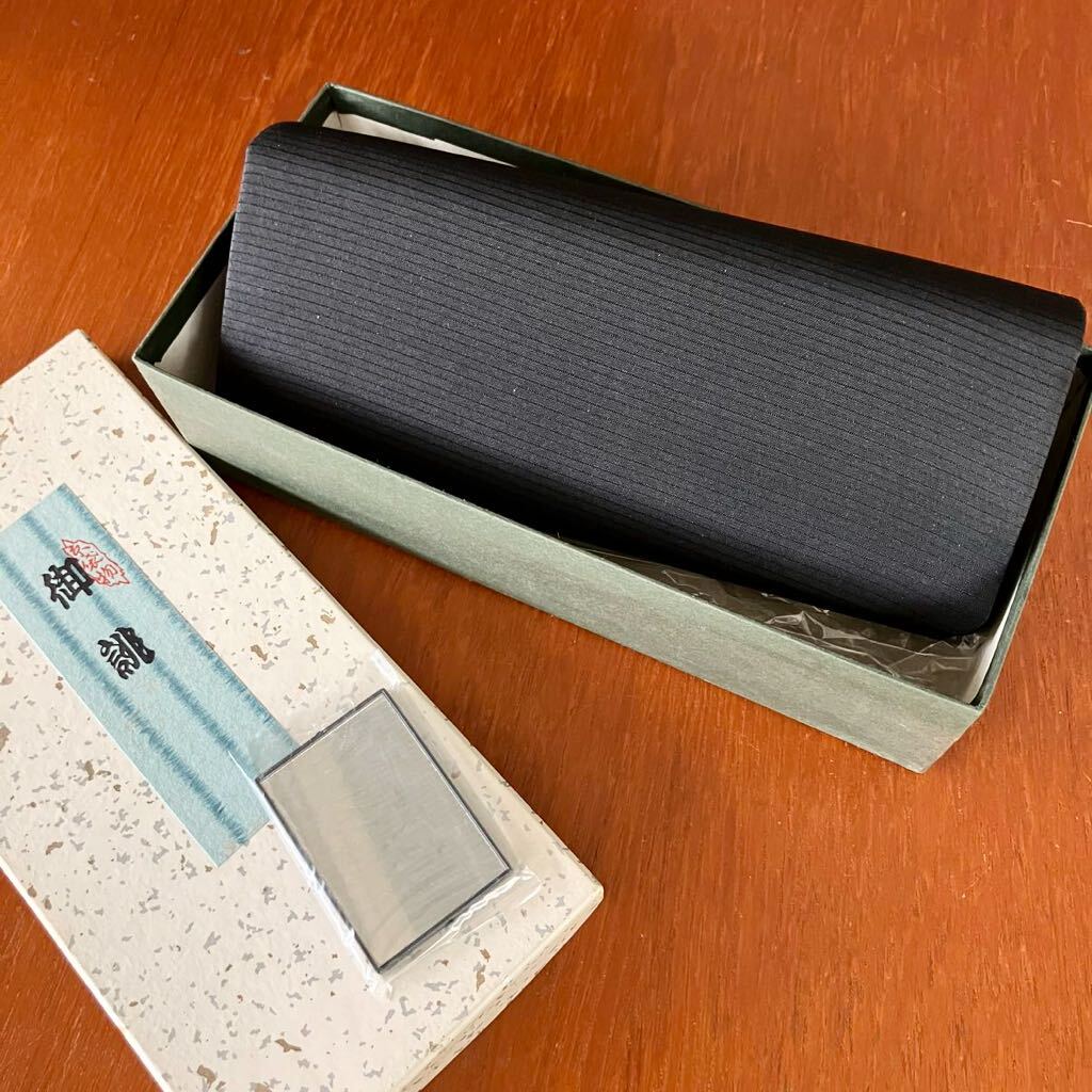 ●【新品同様】京袋物 御誂 和装 ハンドバッグ/クラッチバッグ/着物/黒/箱入り/小物入れ/手鏡付き/縞模様/②