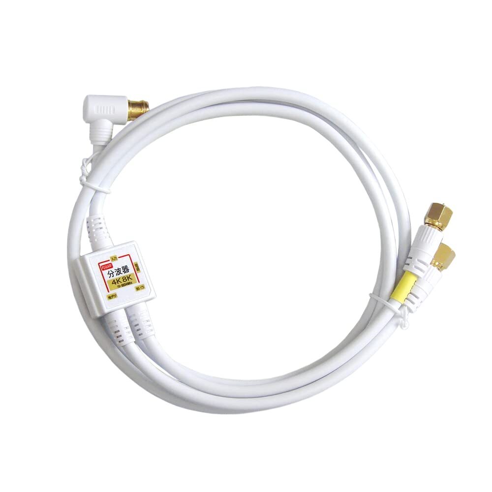 分波器ケーブル長:20cm、出力端子:F型接栓プラグ、入力ケーブル長:1.5m、F型プラグ(L型)、カラー:ホワイト、プラグ部分:金メッキ