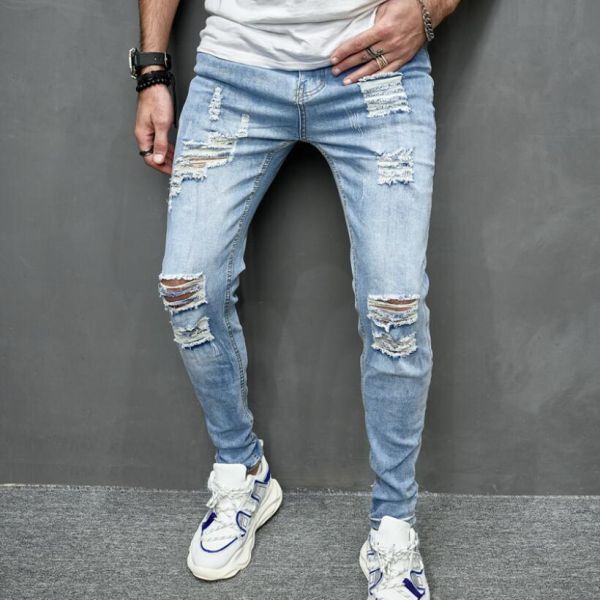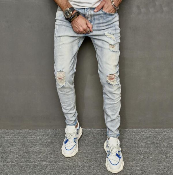 人気推薦 / ジーンズ ジーパン スキニーパンツ メンズ 新品 デニムパンツ ストレッチ バイクジーンズ ダメージ ボトムス / グレー