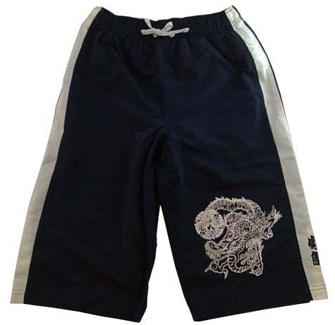 SS0724-5■ 新品 メンズ 水着 ハーフパンツ サイドライン ウエスト総ゴム ウエスト紐有り 左裾前プリント柄 M寸 ネイビー/ 白 送料 350円