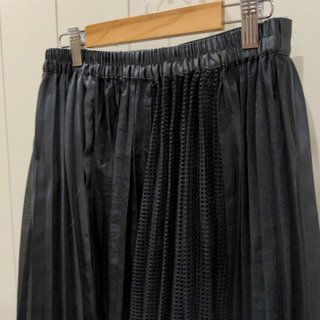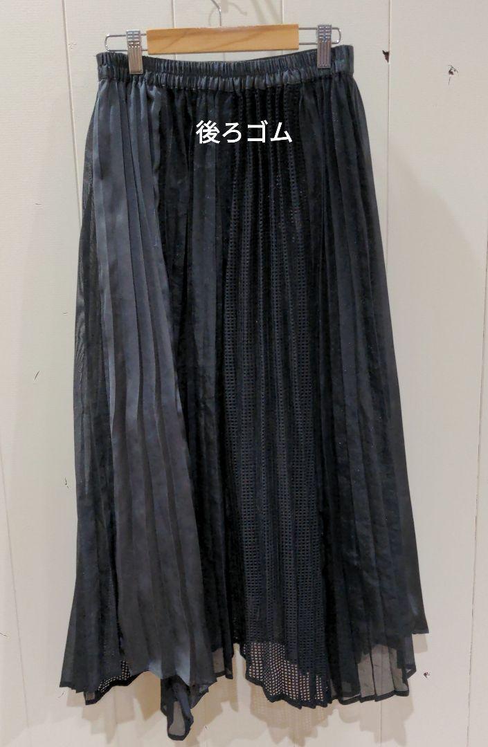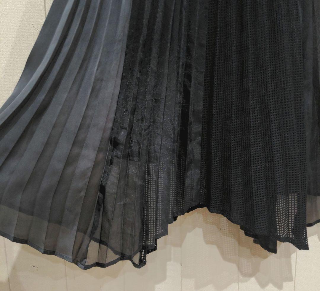 【商品名】アシンメトリー 切替 ロングプリーツスカート