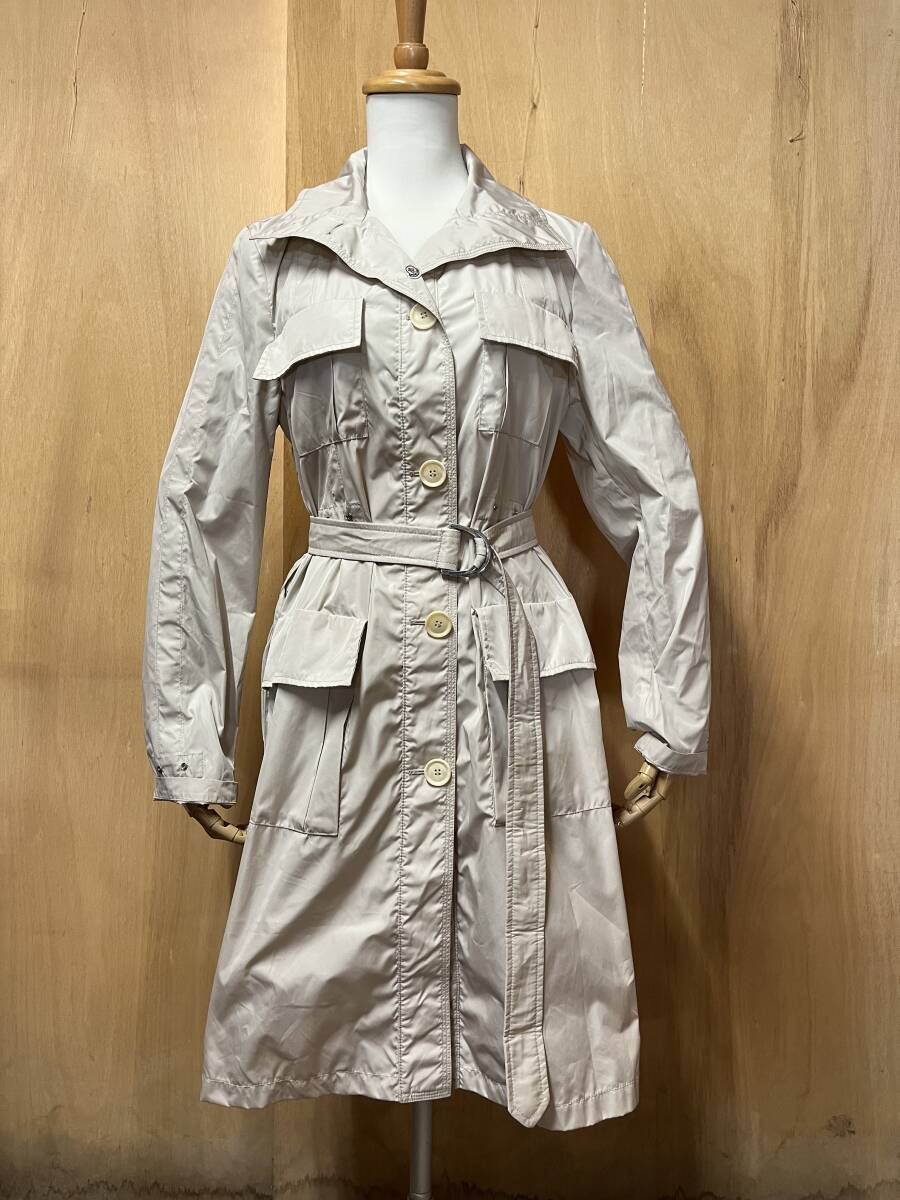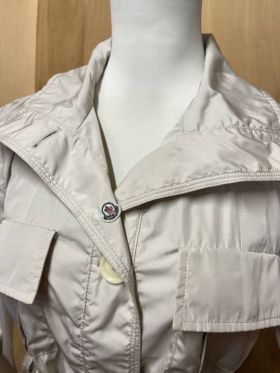 美品 正規品 モンクレール MONCLER ロゴワッペン ポリエステル ベルト付き コート ライトベージュ サイズ2 | ||