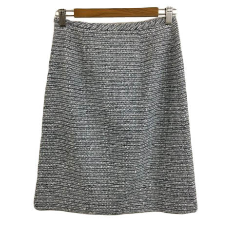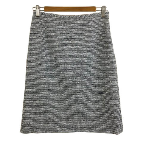 アナイ ANAYI スカート フレア ひざ丈 ツイード 総柄 36 白 紺 ホワイト ネイビー レディース