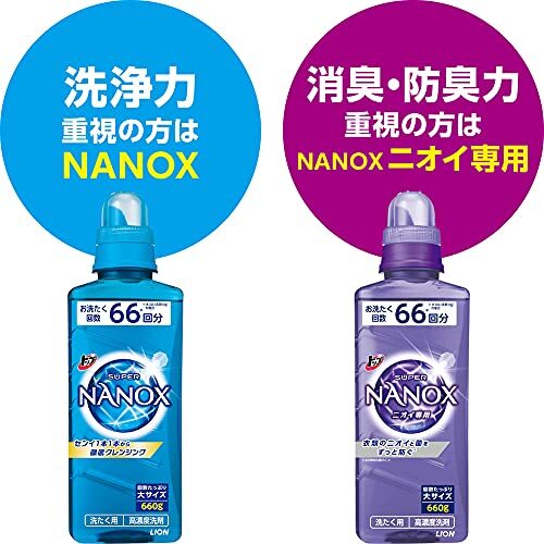「トップ ナノックス(NANOX)【大容量】トップ スーパーナノックス ニオイ専用 プレミアム抗菌処方 部屋干し 洗剤 蛍光剤無配合 洗濯洗剤 液」▼4903301293248▼(商品説明)・ 900グラム (x 1) ・・ScentName:アクアソープSize:900グラム (x 1)・商品サイズ(幅×奥行×高さ):16cm×9cm×27cm・内容量:900g・原産国:日本・液性:中性・すっきり爽やかなアクアソープの香り説明 商品紹介 消臭科学から生まれたニオイ専用超コンパクト洗剤 史上初! 全部無臭化洗浄(※1)であきらめニオイも全方位消臭&防臭 ○独自洗浄成分MEEとナノ消臭酵素により、ニオイ汚れをナノレベルにまで分解・除去 ○プレミアム抗菌(※2)処方で48時間ずっと抗菌。ニオイの原因となる様々な菌(グラム陽性菌・グラム陰性菌)の増殖を抑えます ○消臭成分入り香料が、着用中もニオイを中和しニオわせません ○すっきり爽やかなアクアソープの香り ○洗たく槽もニオイ・菌・カビからしっかり守ります。~多糖分解酵素配合~ ○すすぎ1回OK ○スピードコースでもOK (※1)生物・物理・感覚・化学的消臭によるトータルアプローチ (※2)全ての菌に対して抗菌を有するわけではありません・使用上の注意 ●乳幼児の手の届くところに置かない。●認知症の方などの誤飲を防ぐため、置き場所に注意する。●用途外に使わない。●荒れ性の方や原液で使うときは、炊事用の手袋を使用する。●使用後は手を水でよく洗い、クリームなどで手入れをする。●洗濯機のフタなどのプラスチック部分や床に原液がついた時は、放置すると傷むことがるのですぐに水で充分ふきとる。・原材料・成分 界面活性剤(52% ポリオキシエチレン脂肪酸メチルエステル、アルキルエーテル硫酸エステル塩、直鎖アルキルベンゼンスルホン酸塩、ポリオキシエチレンアルキルエーテル)、安定化剤、pH調整剤、酵素