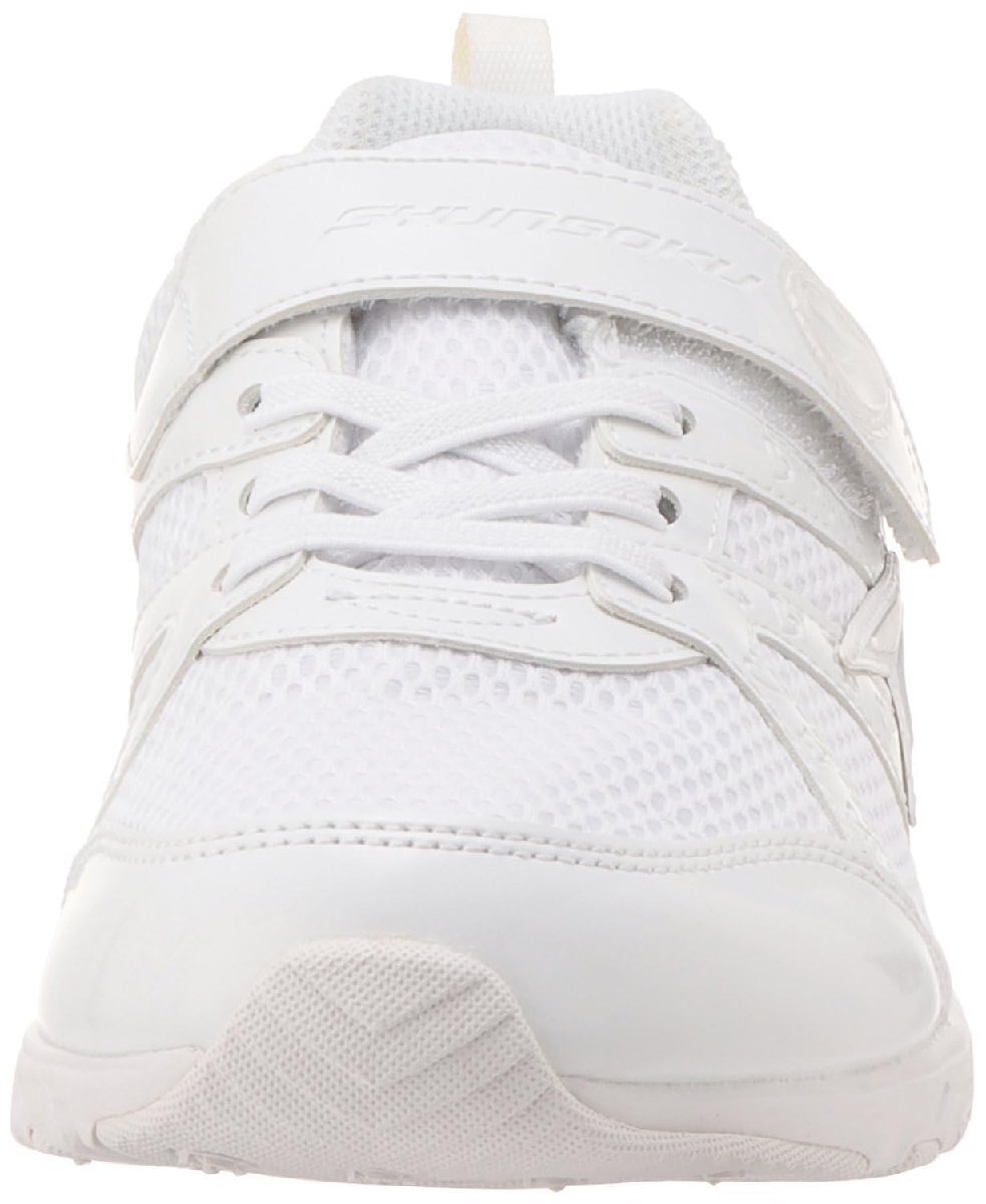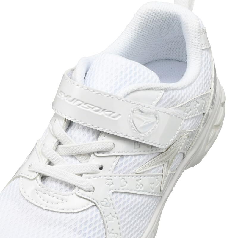 「[シュンソク] スニーカー キッズ 女の子 白 通学靴 軽量 19cm~24.5cm 2E LEJ 7870 4270 ホワイト/ホワイト_現行」▼4550503104041▼(商品説明)スニーカー・ホワイト/ホワイト_現行カラー 23.0 cm 2E LEJ 7870 4270・・Size:23.0 cm 2EColor:ホワイト/ホワイト_現行カラー・靴幅: 2E (標準)・通気性バッチリ・軽量(当社比)・中敷取り外し可靴幅標準のレギュラーモデル。 「瞬足(シュンソク)」の定番ソール【Hi-STANDARD(ハイ スタンダード)】を採用した女の子向けのスニーカー。 ソール(靴底)を含め、靴全体を白(オールホワイト)の通学履きに、服と合わせやすいシンプル・ベーシックなカラーを追加した運動靴になります。バンド部分にハート飾りが付いており、かわいい女の子らしいデザインです。 ・【軽量&通気性】 軽量設計(当社比)で、アッパーはメッシュ素材を使用し、通気性を確保し、長時間の歩行・走行にも対応。 ・【屈曲溝】 自然な足の動きをサポートする屈曲溝により、走行時のパワーを地面に伝達! ・【ダッシュスパイク】 つま先に配置したダッシュスパイクにより、抜群のグリップ力を発揮。 ・【横すべりガードスパイク】 横すべり防止用に連続した特殊なスパイクを搭載し、しっかりと地面を掴み、走行時にグリップ力を発揮。 ・【左右非対称設計ソール】 トラック競争で左回りのコーナーを攻略するための左右非対称設計のソール&スパイクを搭載。通常の歩行時(アスファルト・コンクリート・タイル等)では10kgほどの重さでスパイクがへこむためソール全体もフラットとなり、普段の日常生活においても影響を与えません! ・【取り外し可能カップインソール】 優れたホールド性と足にやさしいフィット感が特徴のカップインソール。インソールは取り出して洗えるのでいつも清潔に保てます。 機能性や履き心地だけではなく、おしゃれな男の子にぴったりな「瞬足(シュンソク)」のおすすめキッズスニーカーです。 自分の足に完璧にフィットした靴こそがいい走りへの絶対条件!瞬足で「いい走り」を! 運動会はもちろん、通学や遊びなどさまざまな日常シーンで活躍してくれるので、お子様やお孫様のプレゼントにも最適です。