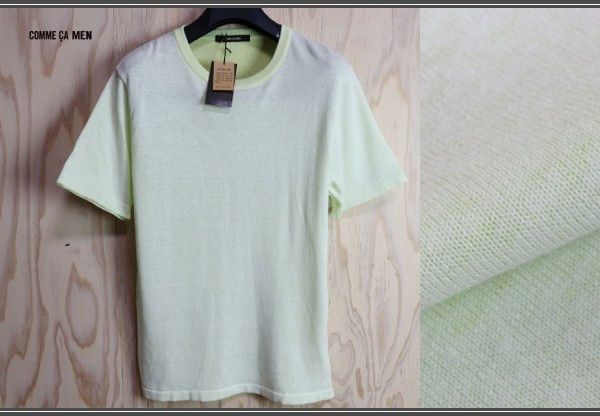 コムサ系のメインブランド、コムサメン(COMME CA MEN)の日本製 カラーバック リネン コットン 霜降り 半袖ニット。